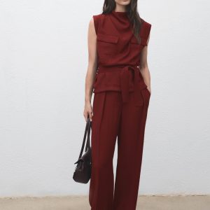 Blouse with draped neck and belt