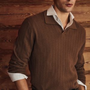 100% cashmere. Straight Design. Polo collar. Straight Silhouette. Fine Knit Structure. Buttonless collar. Long Sleeve. SELECTION: A collection of classic garments featuring minimalist lines and a meticulously crafted design. Made from high-quality fabrics to create a timeless and stylish wardrobe