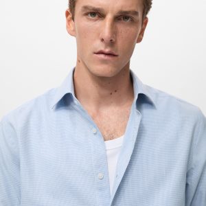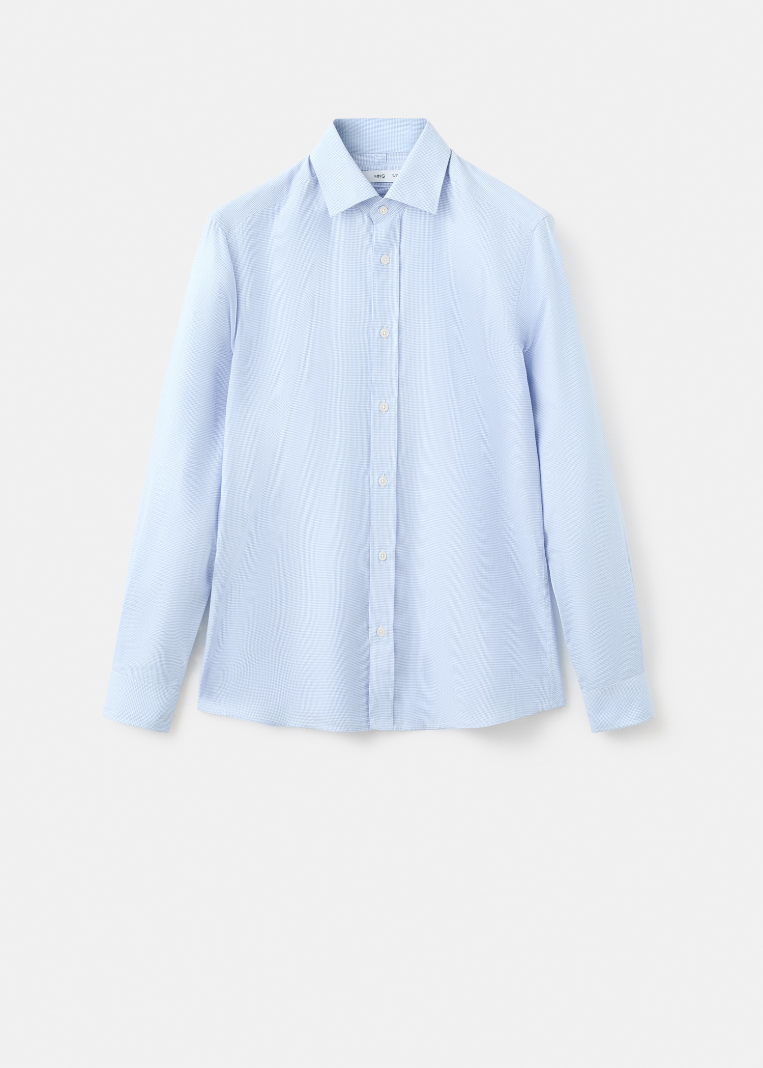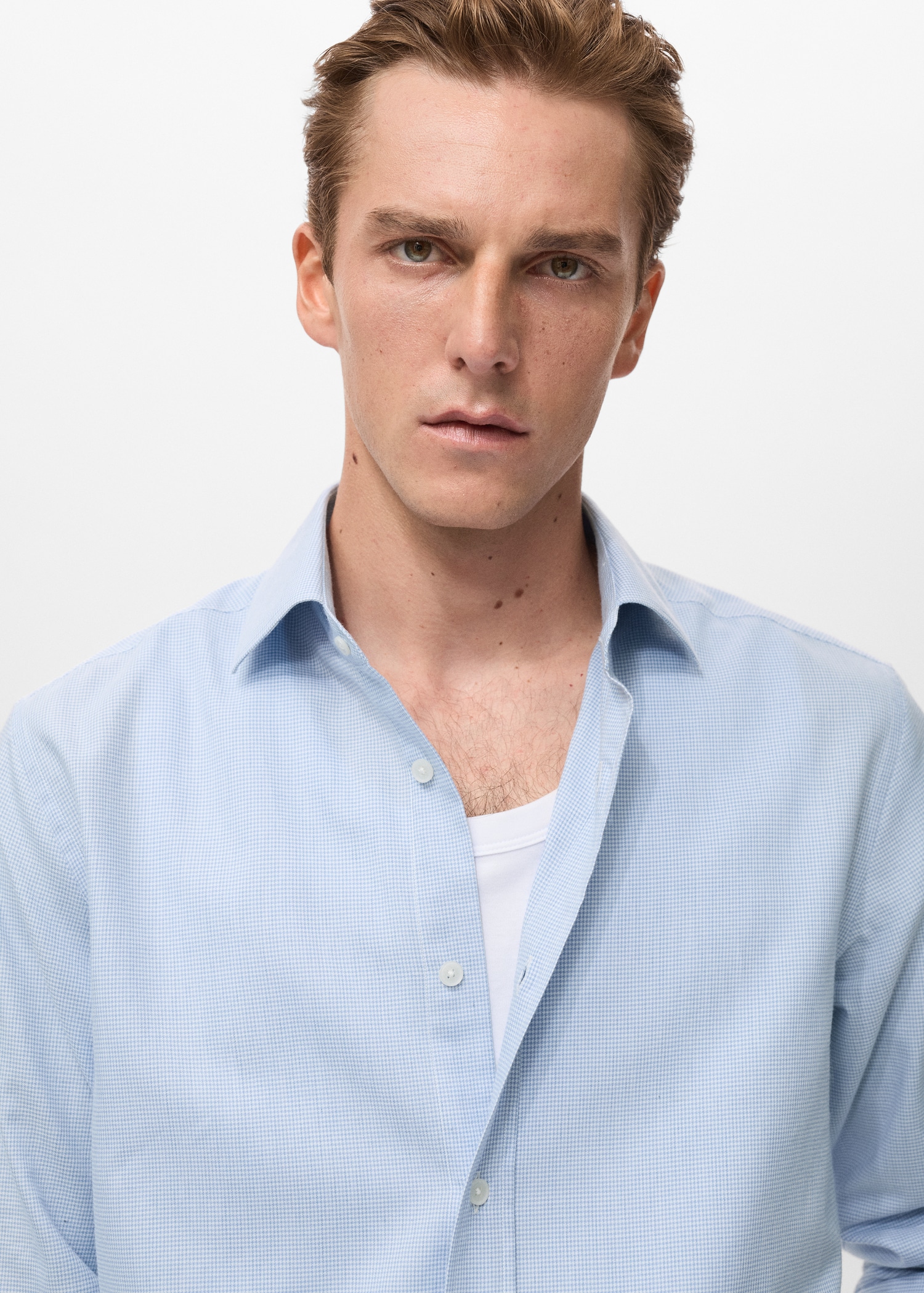 100% cotton fabric. Regular fit. Flannel fabric. Micro print. Shirt collar. Front button closure. Buttoned cuffs. Rounded hem