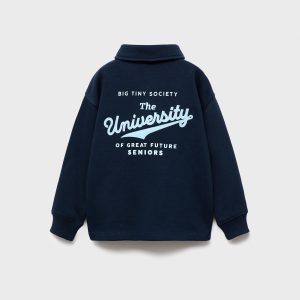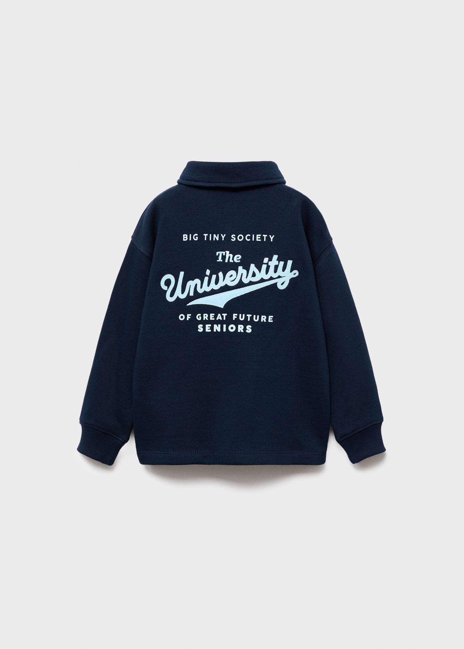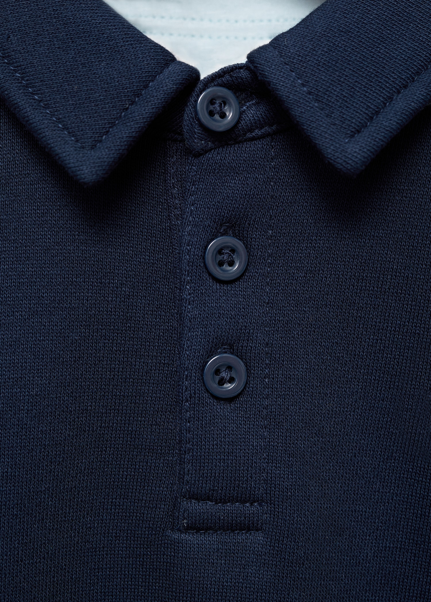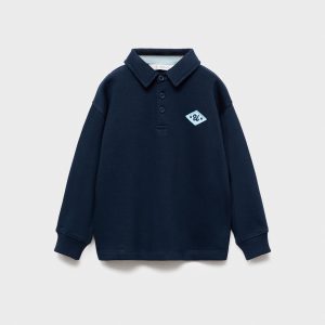 100% cotton fabric. Quilted cotton interior. Straight Design. Polo collar with button closure. Long Sleeve. Embroidered chest patch. Back to school