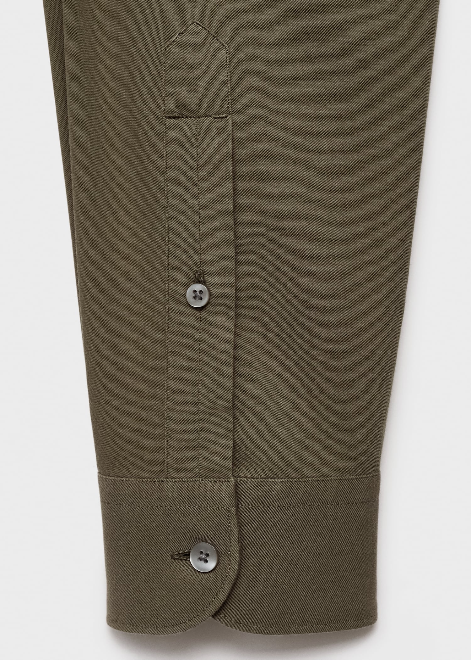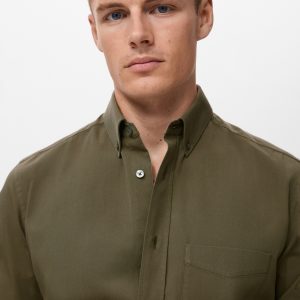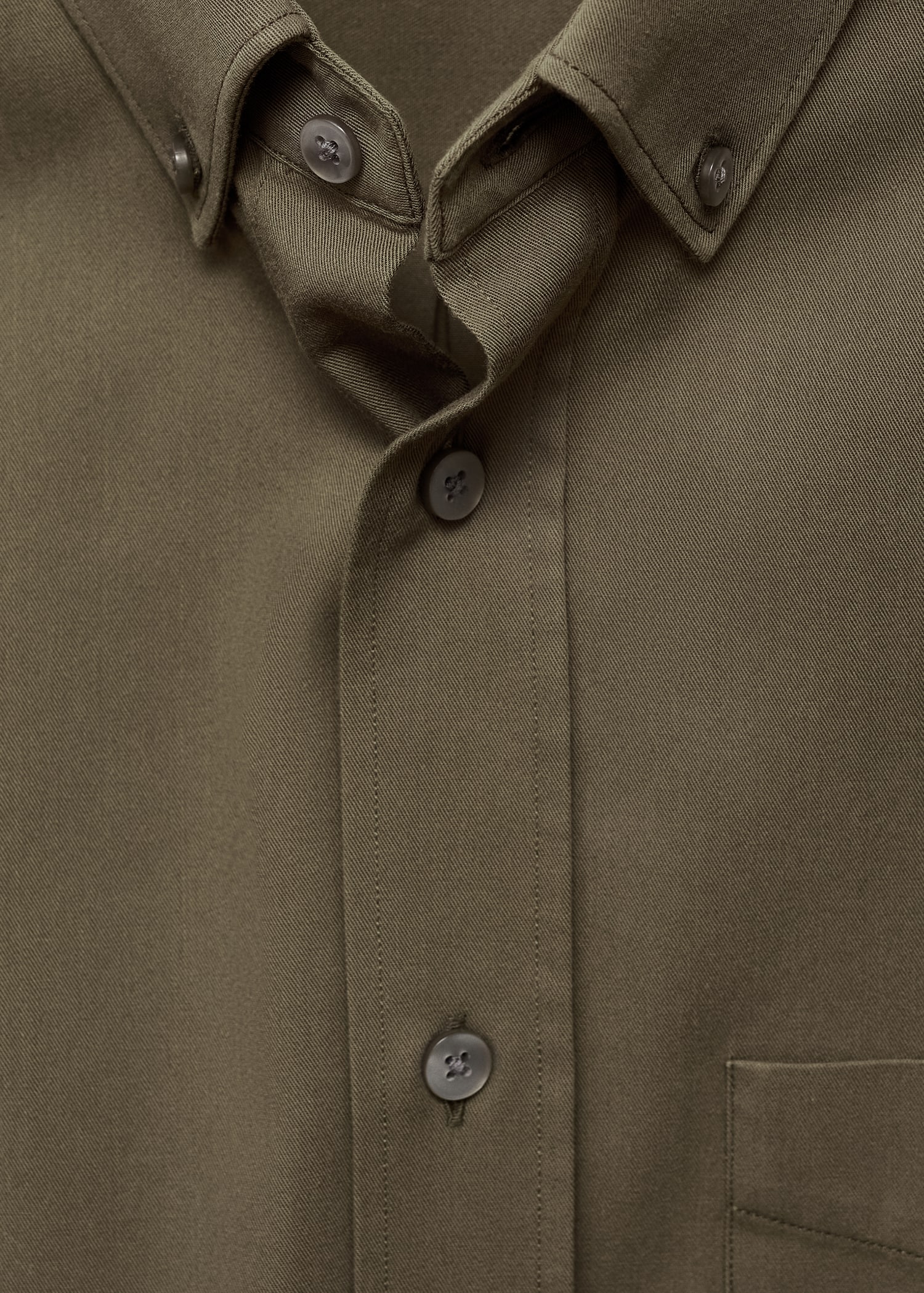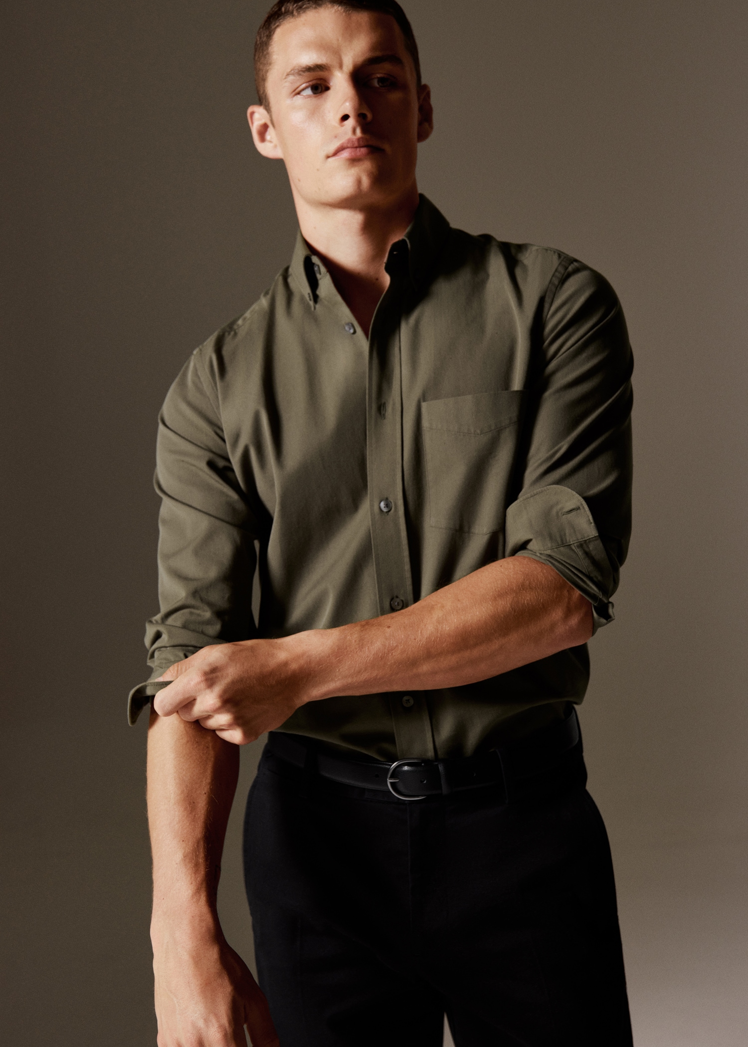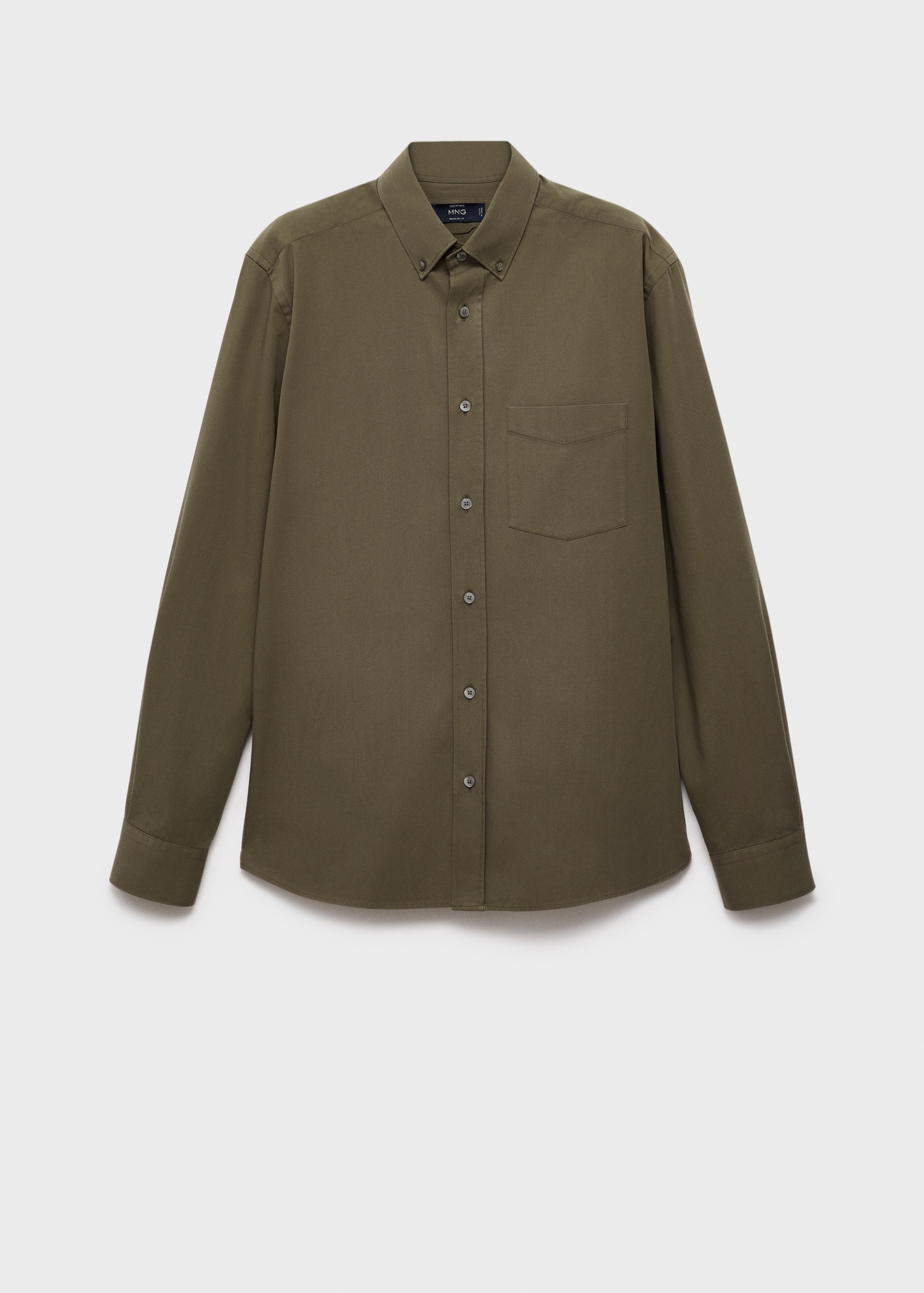 Regular fit. 100% cotton fabric. Button-down collar. Patch pocket on the chest. Long buttoned sleeve. Front button closure. ESSENTIALS: Made to last. We have strengthened our quality standards by adding new endurance tests to our garments. Designed with careful consideration of their construction, they are even more durable, versatile and timeless