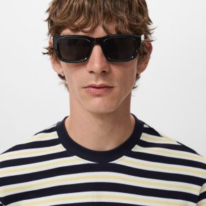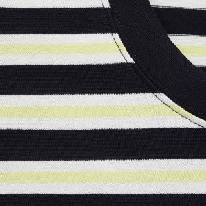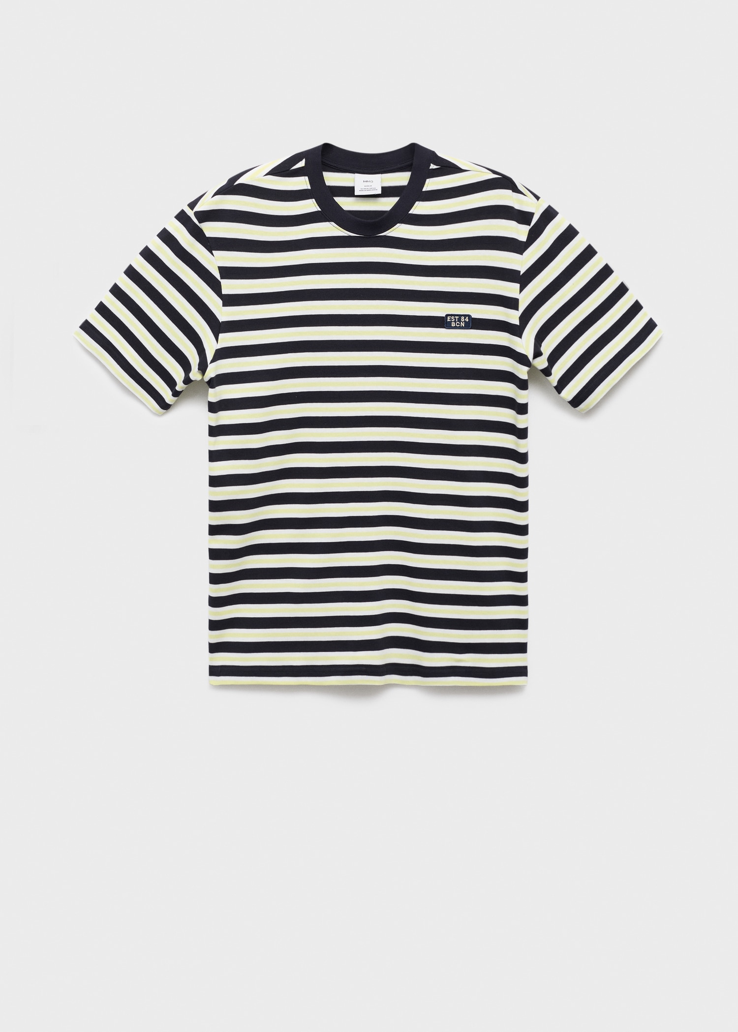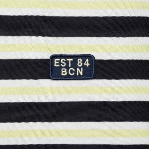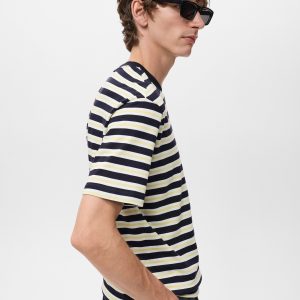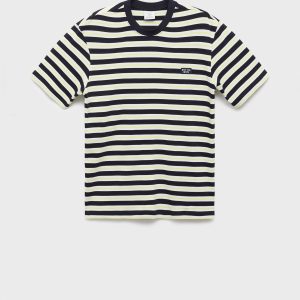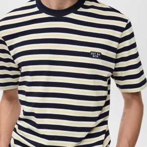 Regular fit. 100% Cotton. Three-tone stripe design. Back opening. Short sleeves. Straight hem