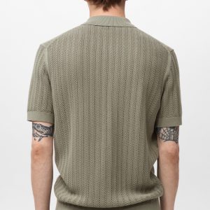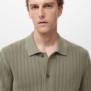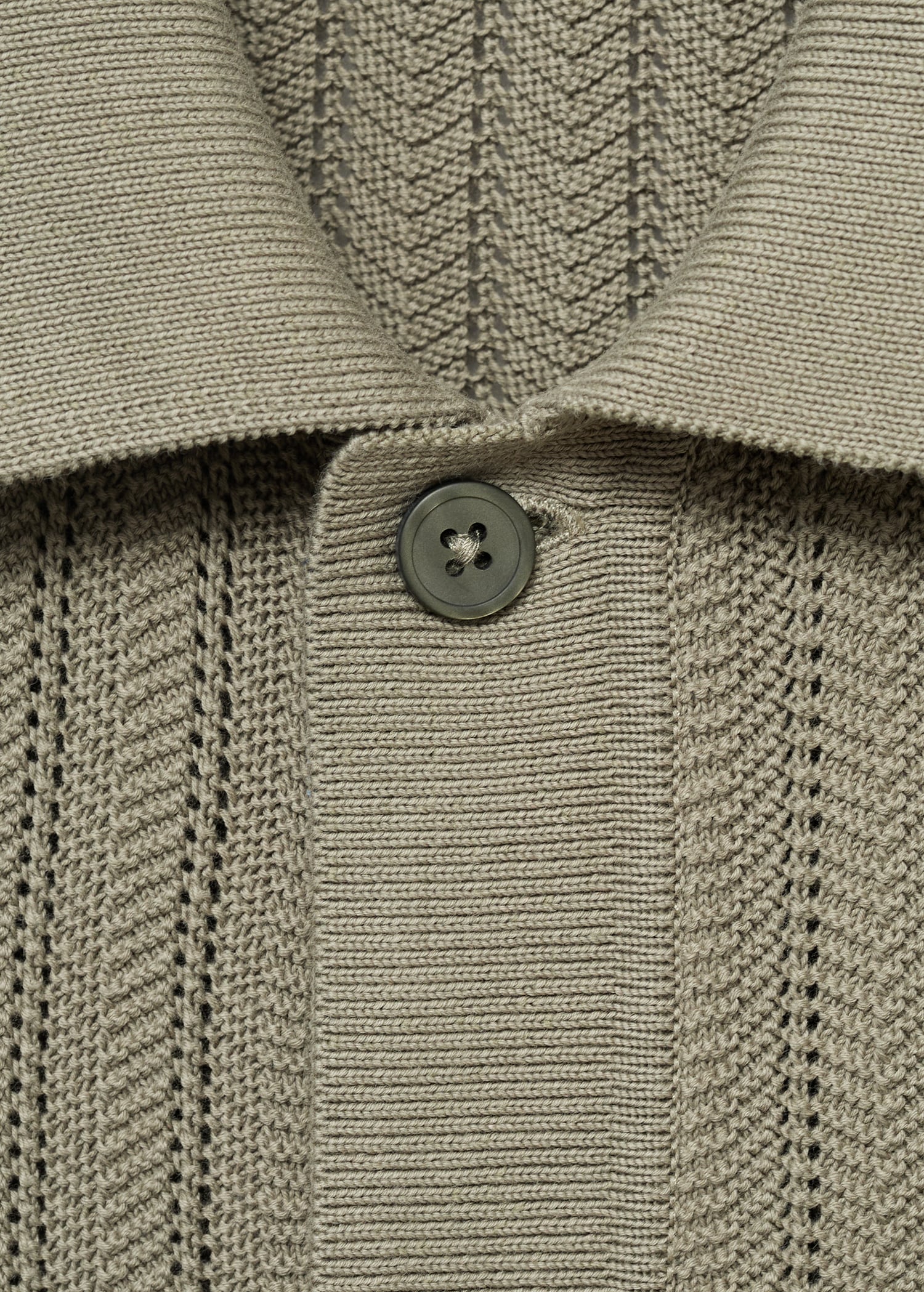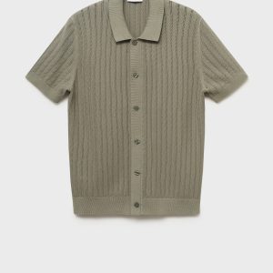Regular fit. 100% cotton fabric. Fine Knit Structure. Short sleeve. Straight hem. Button closure at the front