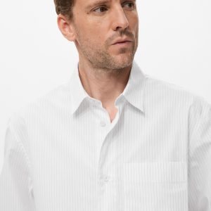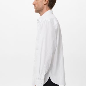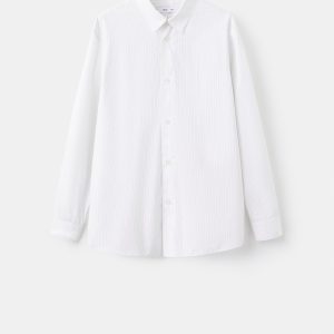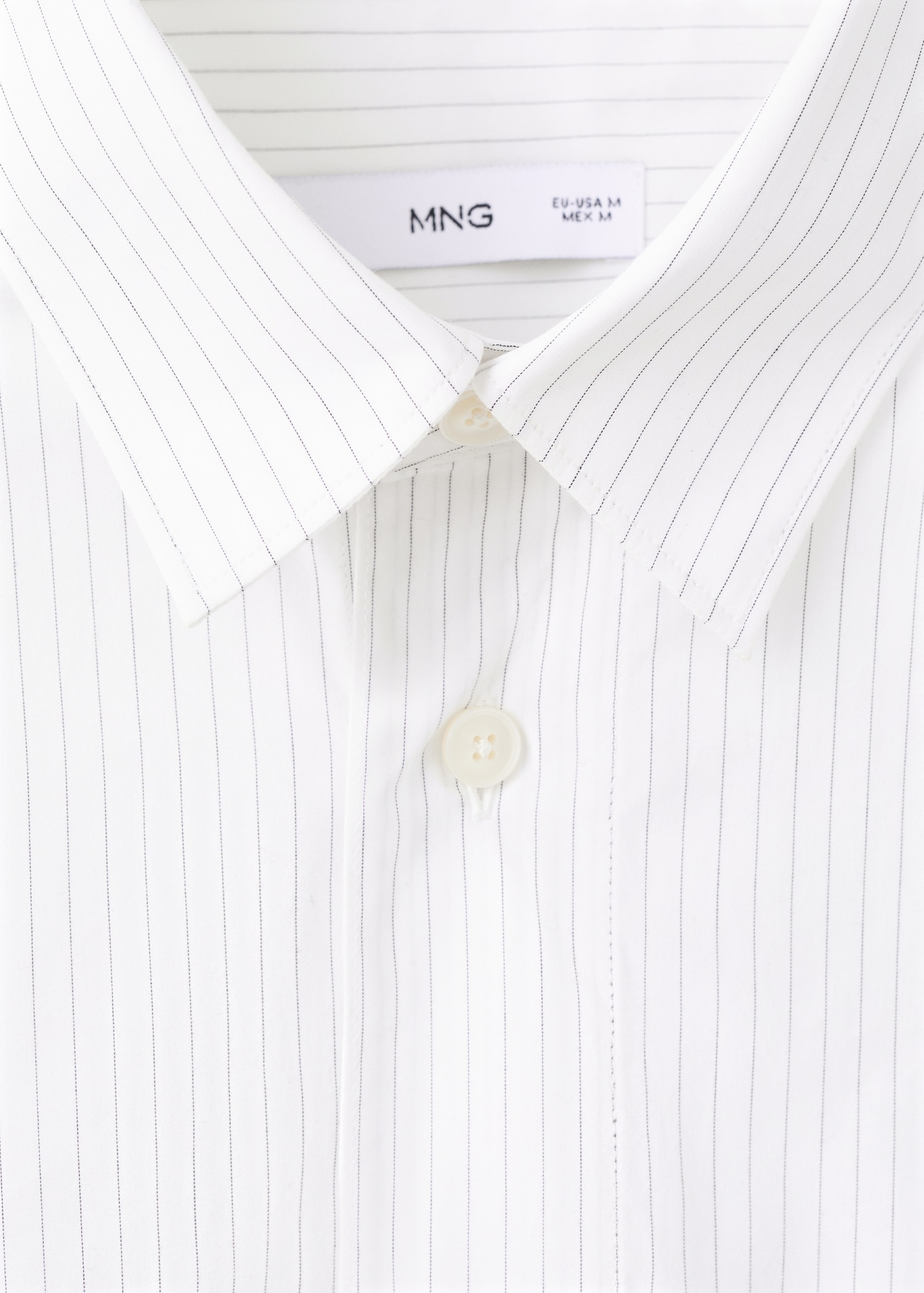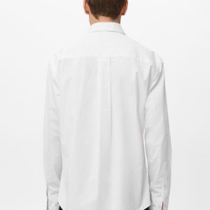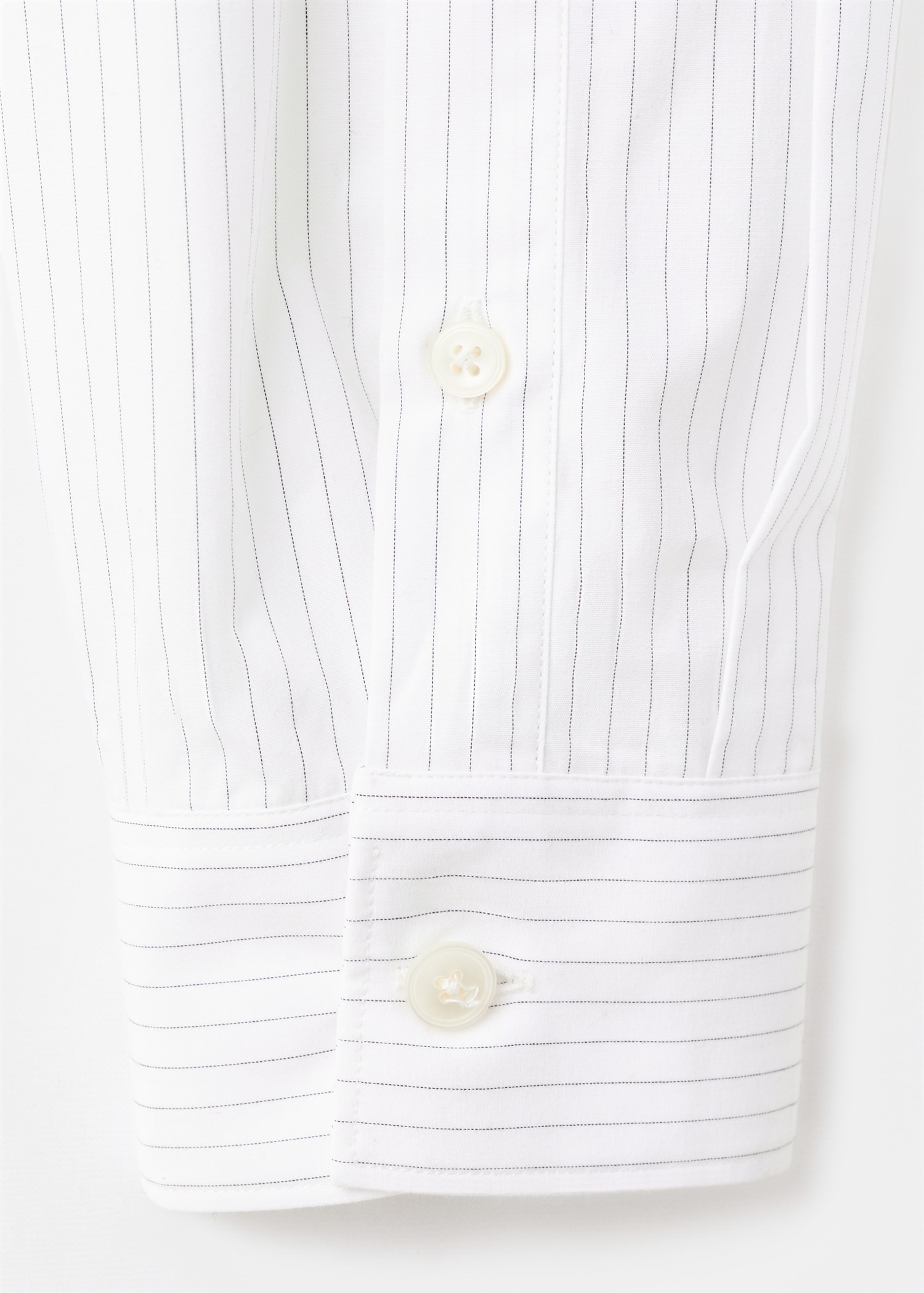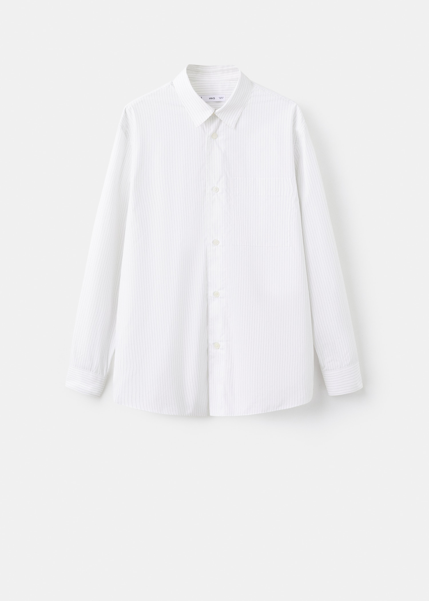 Party collection. Relaxed fit. 100% Cotton. Striped design. Shirt collar. Patch pocket on the chest. Front button closure. Long sleeves with buttoned cuffs. Hem with two side slits