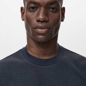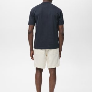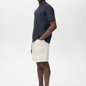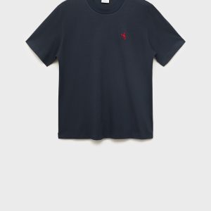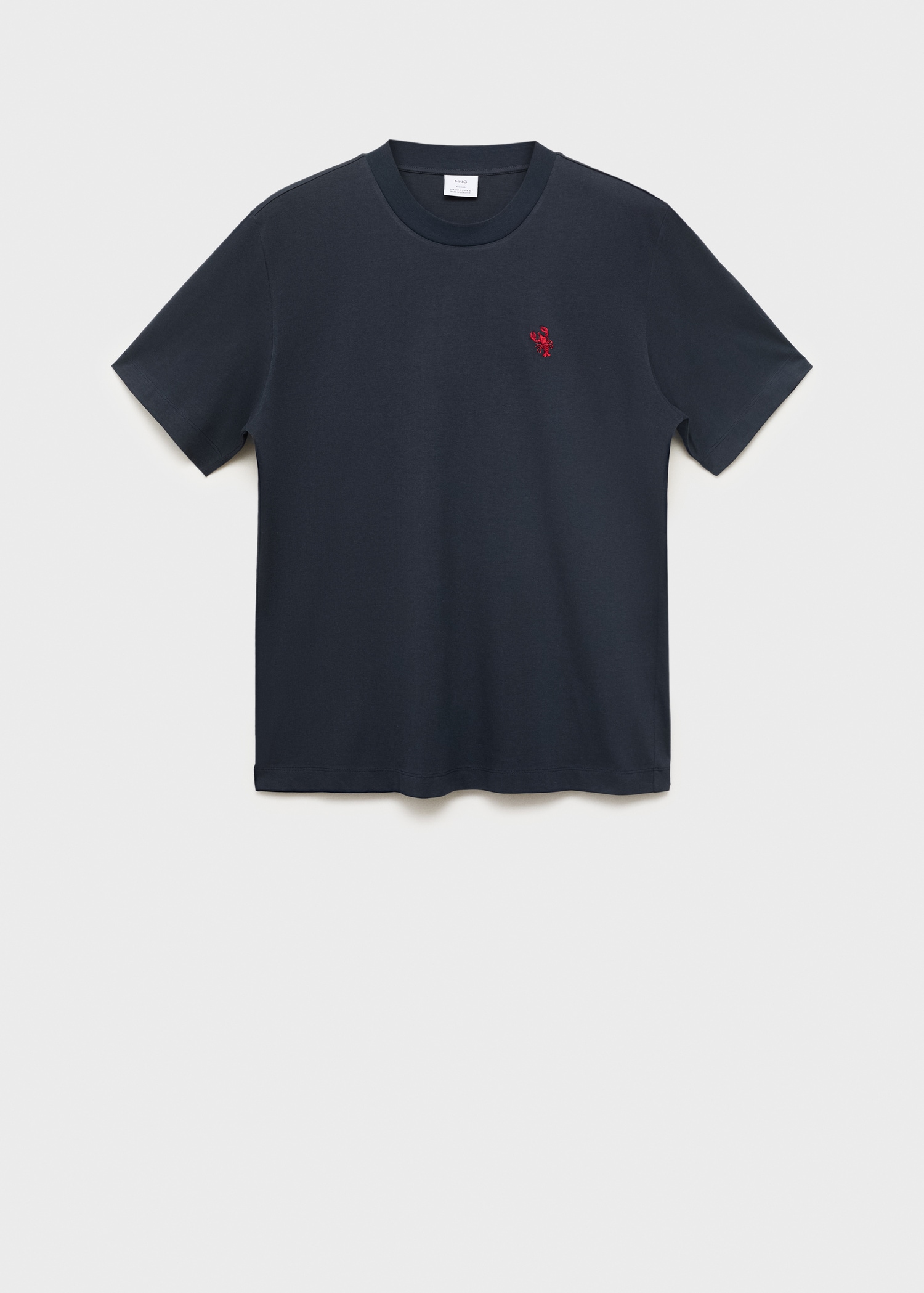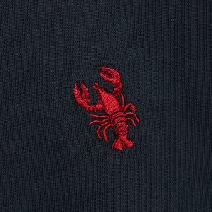 Crafted from 100% cotton fabric, this t-shirt features a regular fit with an embroidered lobster design on the chest. It has a crew neck, short sleeves, and a straight hem. The model is 190 cm tall and is wearing a size M