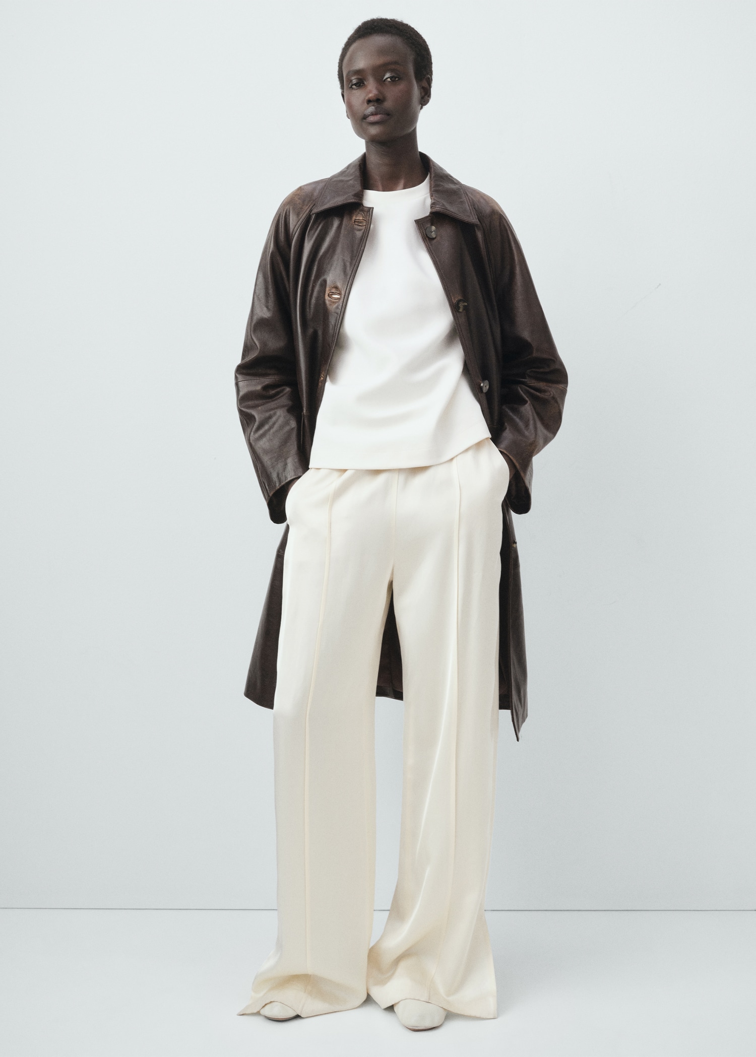 100% leather full-length coat