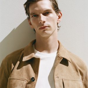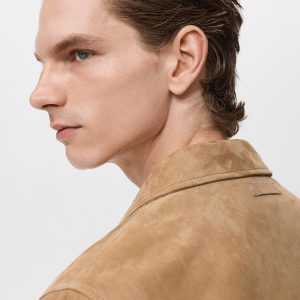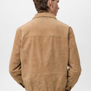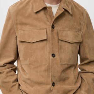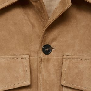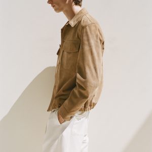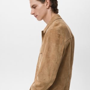 100% suede leather. Straight Silhouette. Shirt collar. Two chest pockets with flaps. Front button closure. Hem with adjustable interior drawstring. Buttoned cuffs