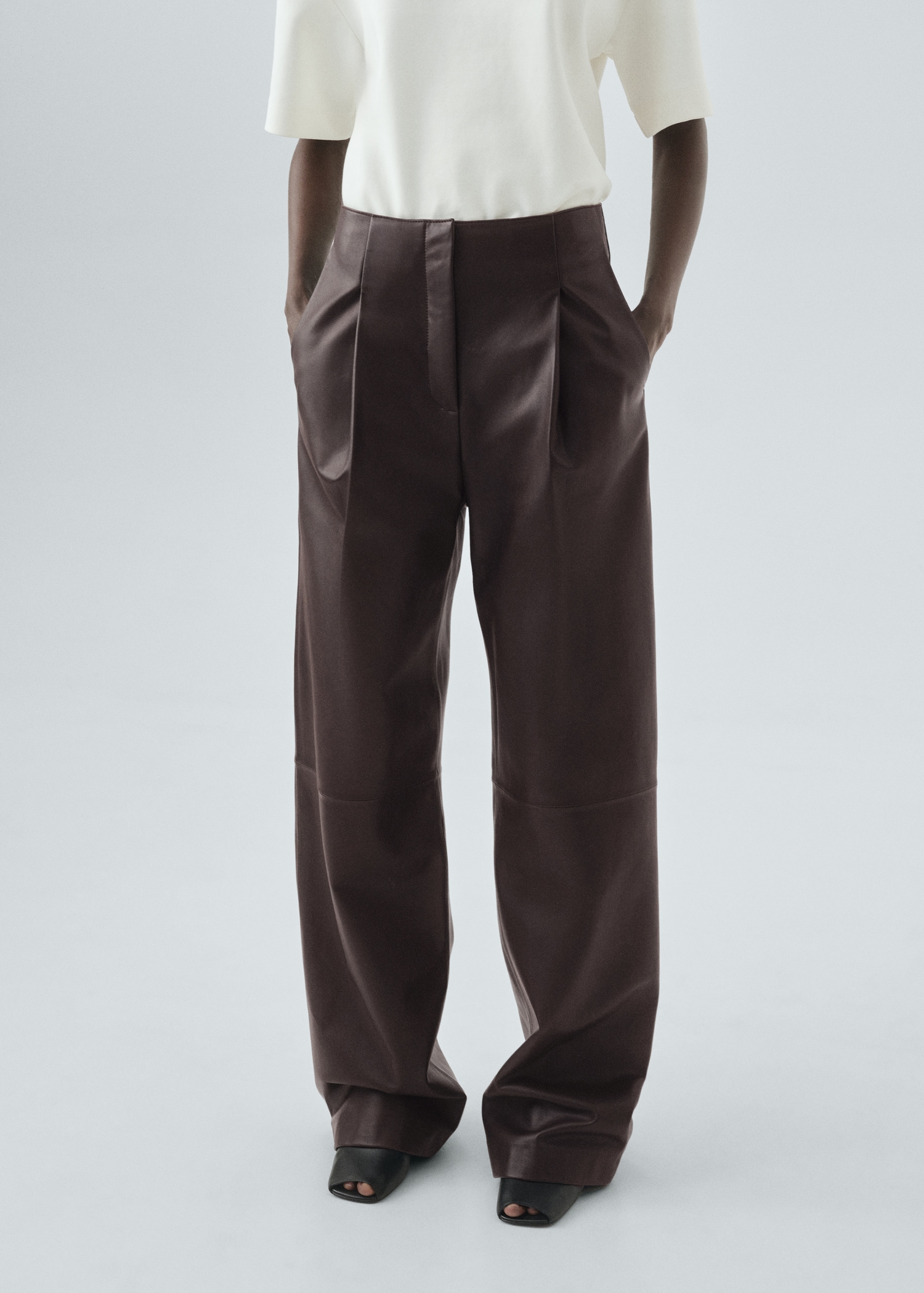 100% leather straight-leg pants