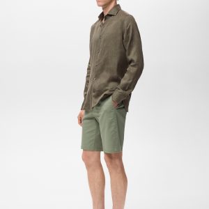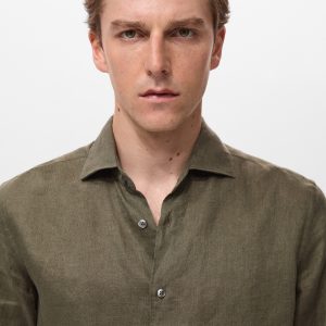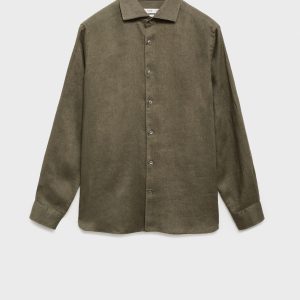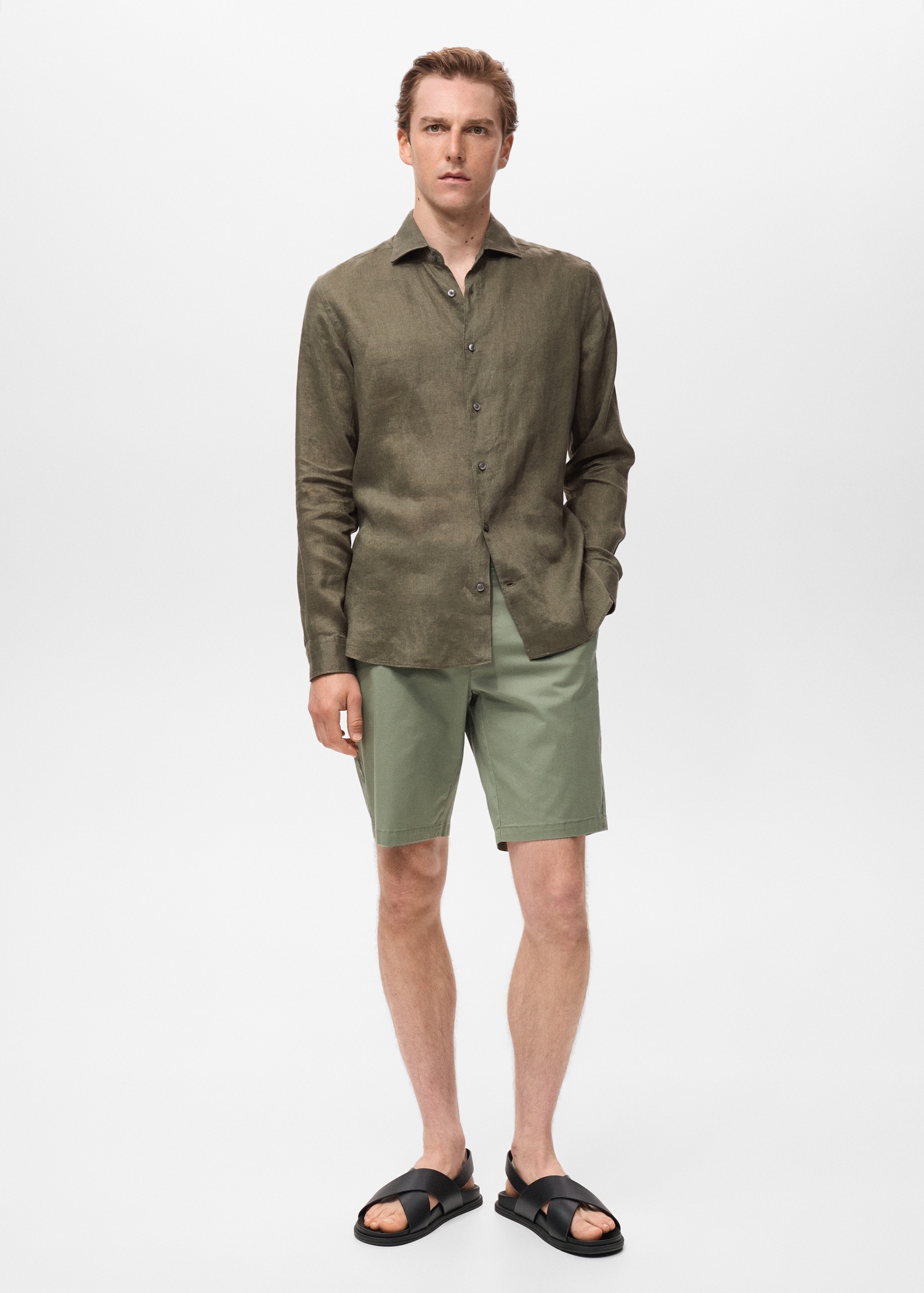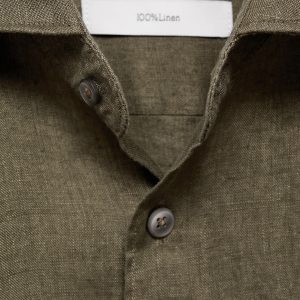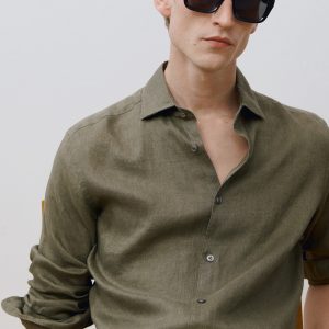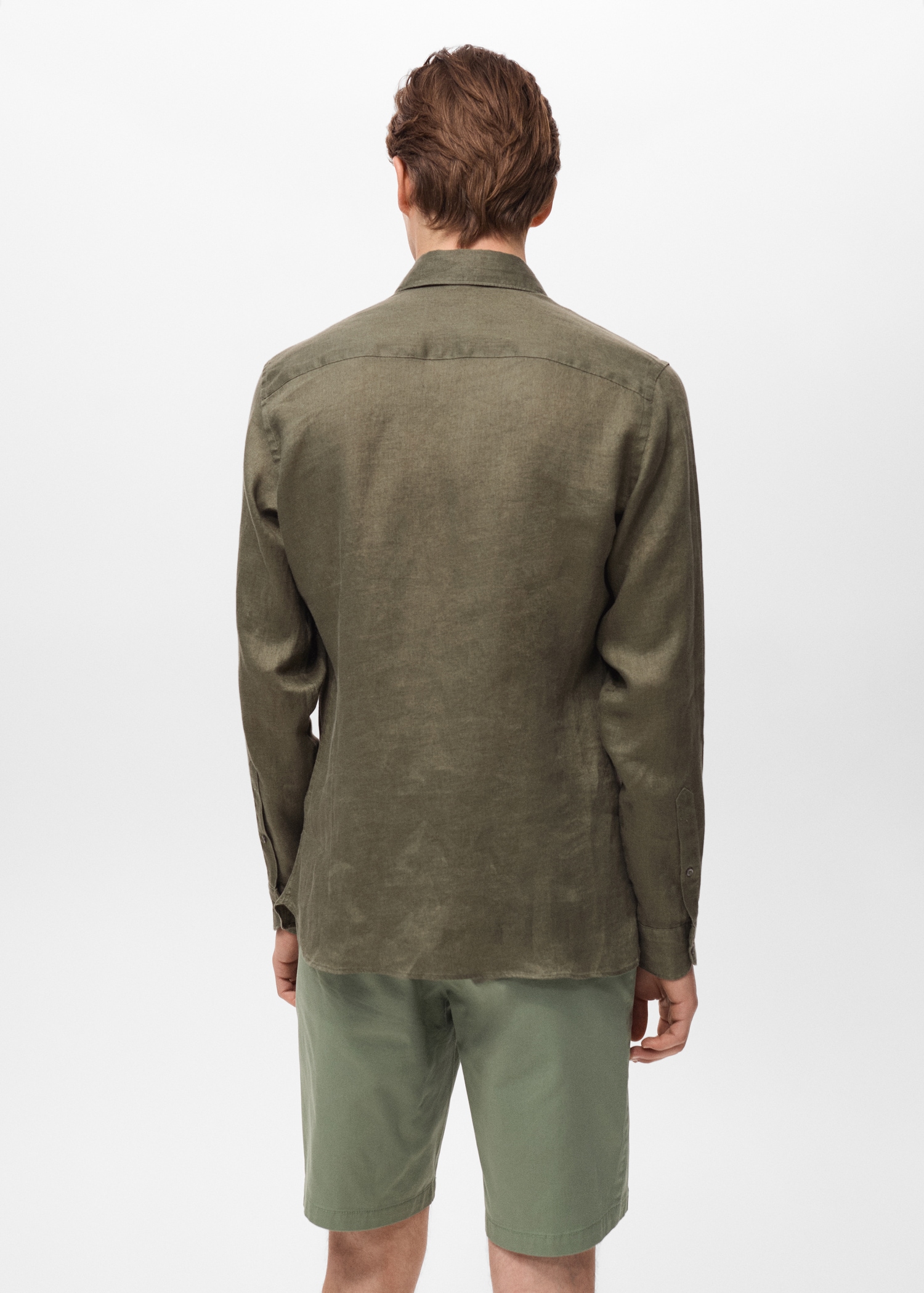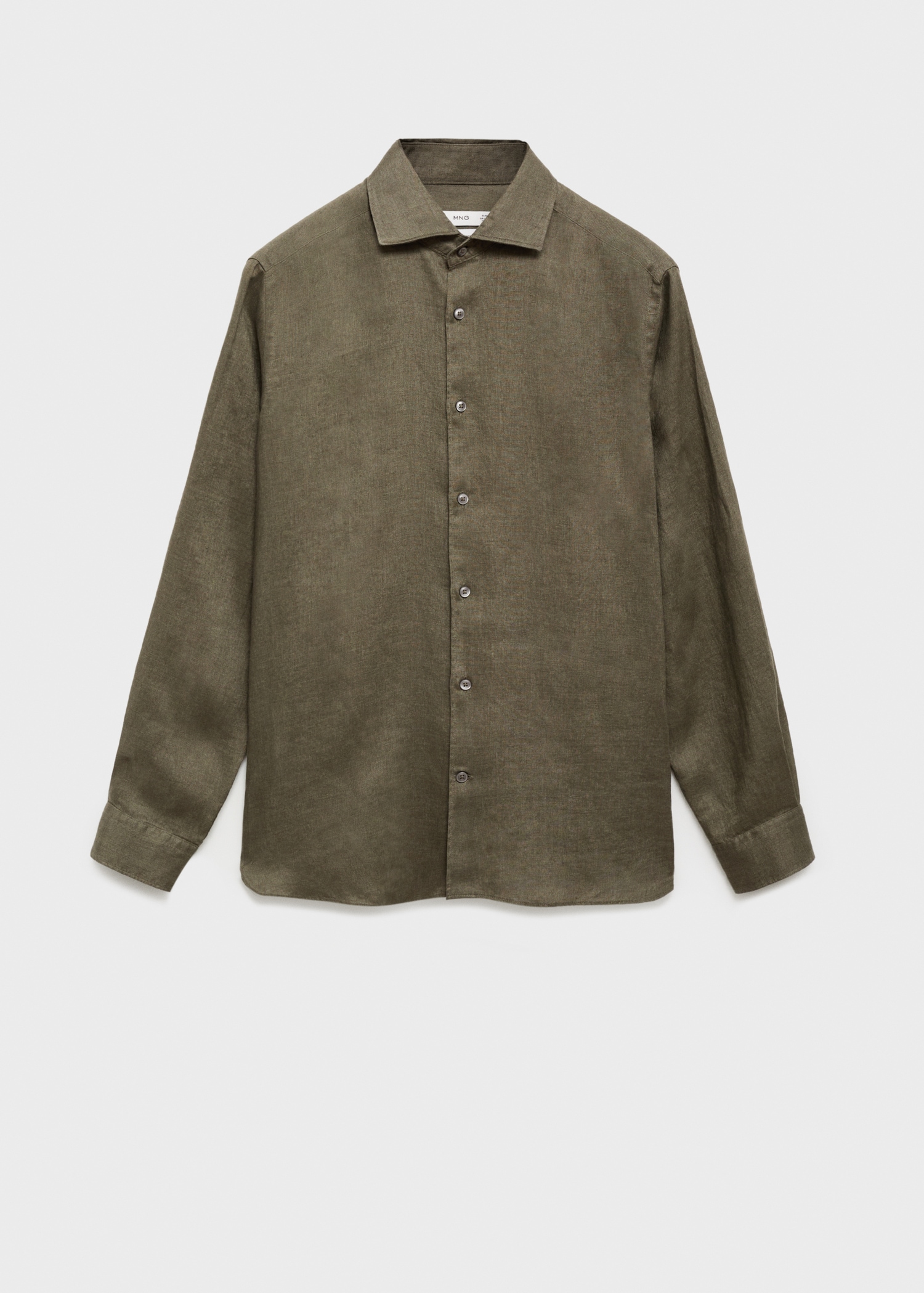 White color is exclusive online. Slim fit. 100% linen fabric. Shirt collar. Long sleeves with buttoned cuffs. Front button closure. Straight hem