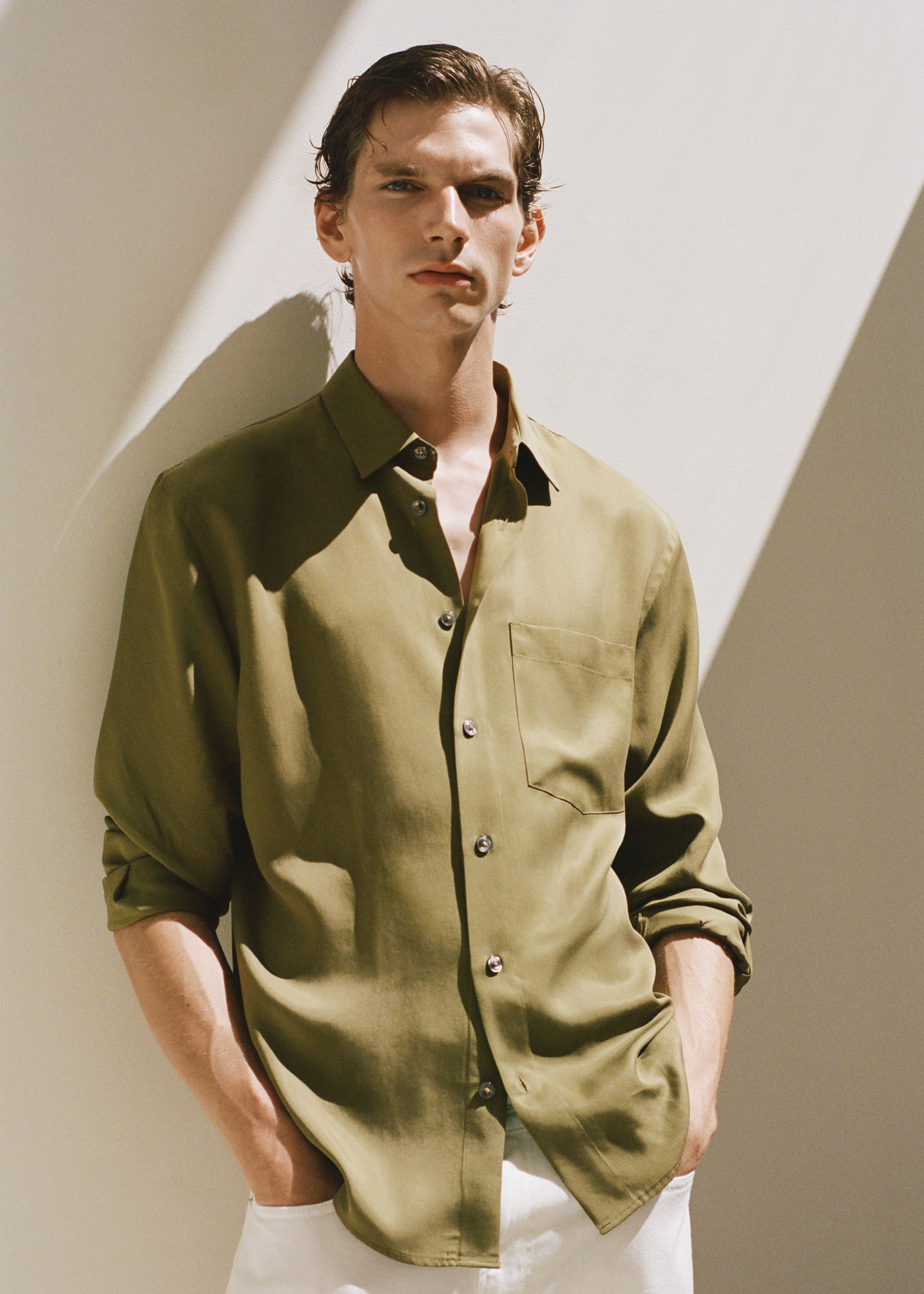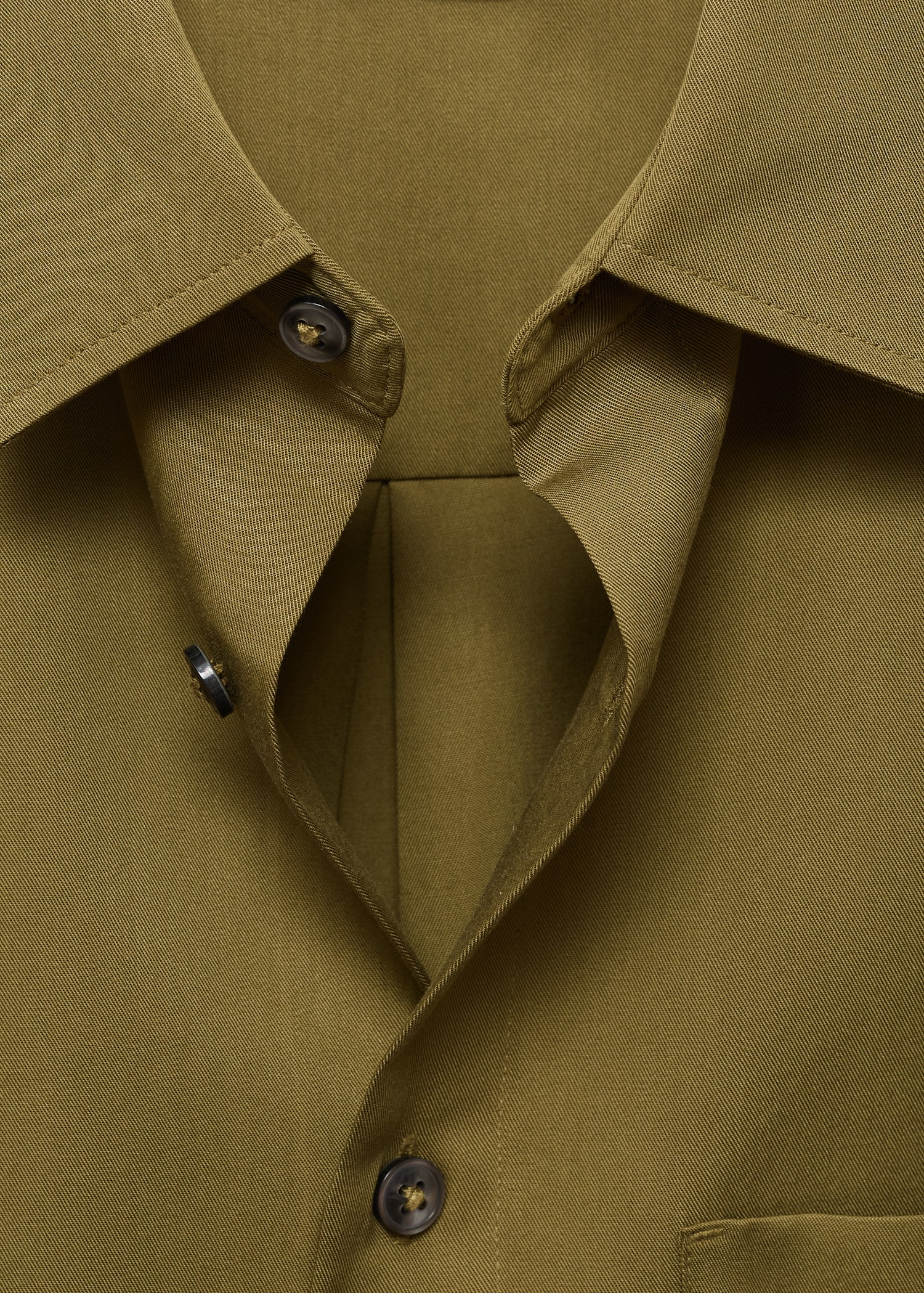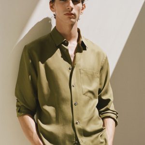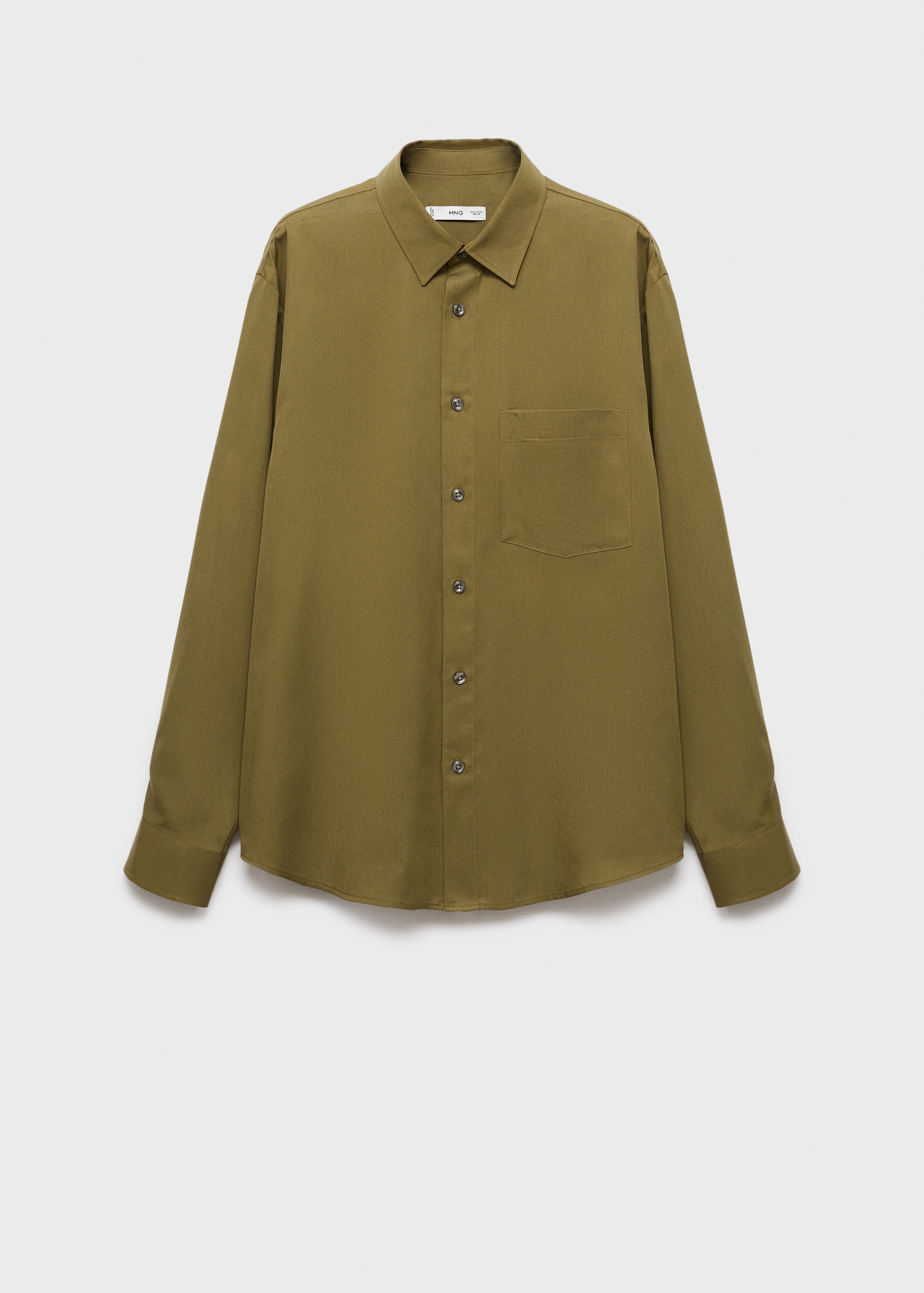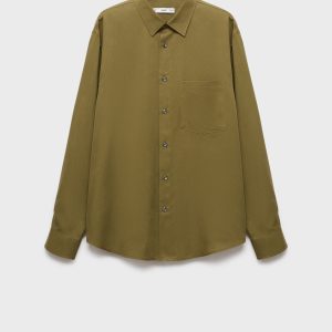Regular fit. 100% lyocell. Shirt collar. Long sleeves with buttoned cuffs. Patch pocket on the chest. Front button closure. Rounded hem