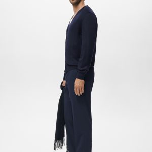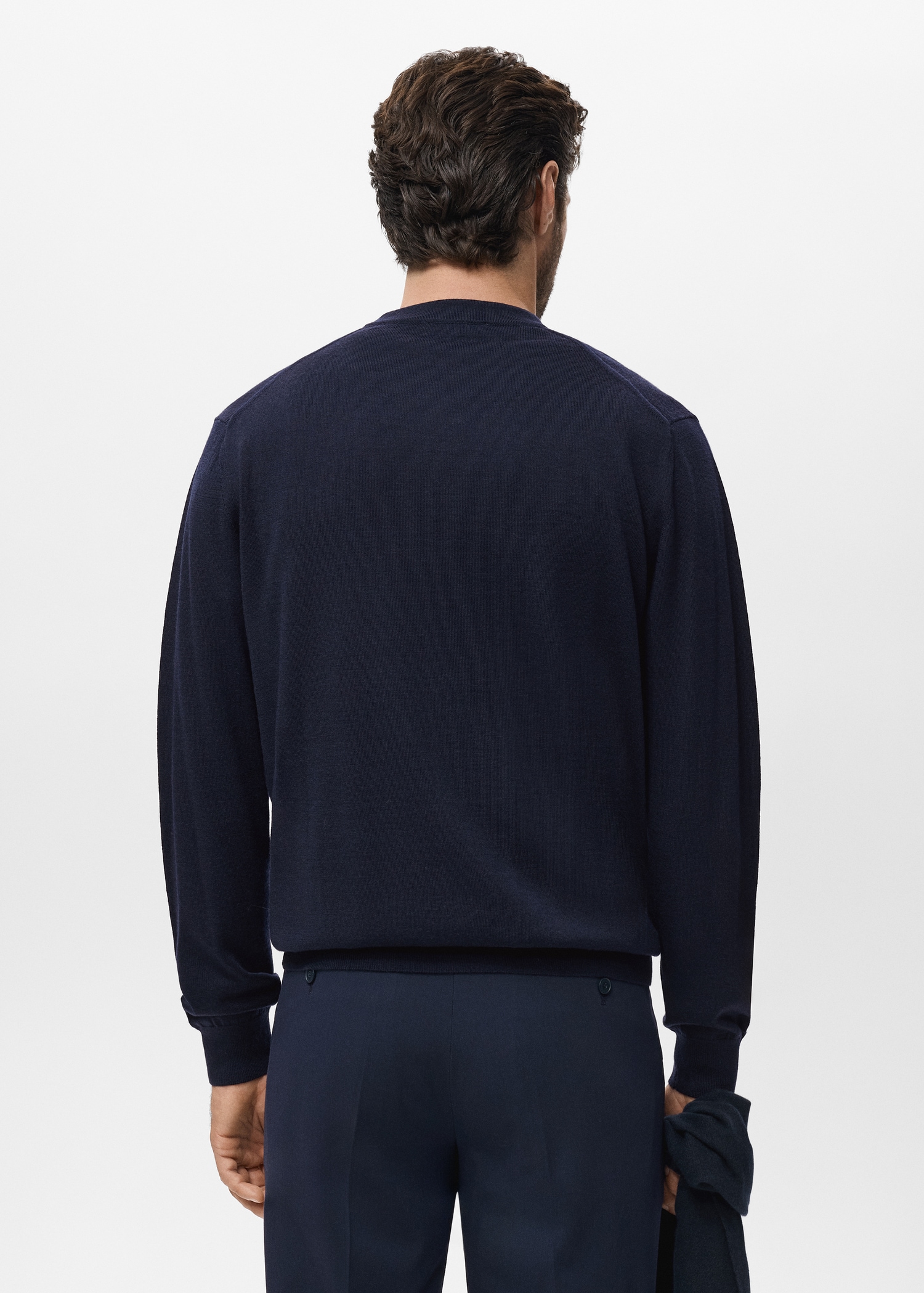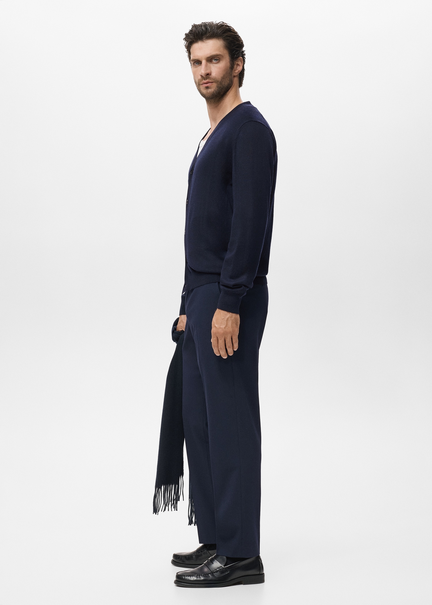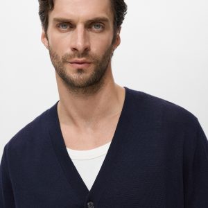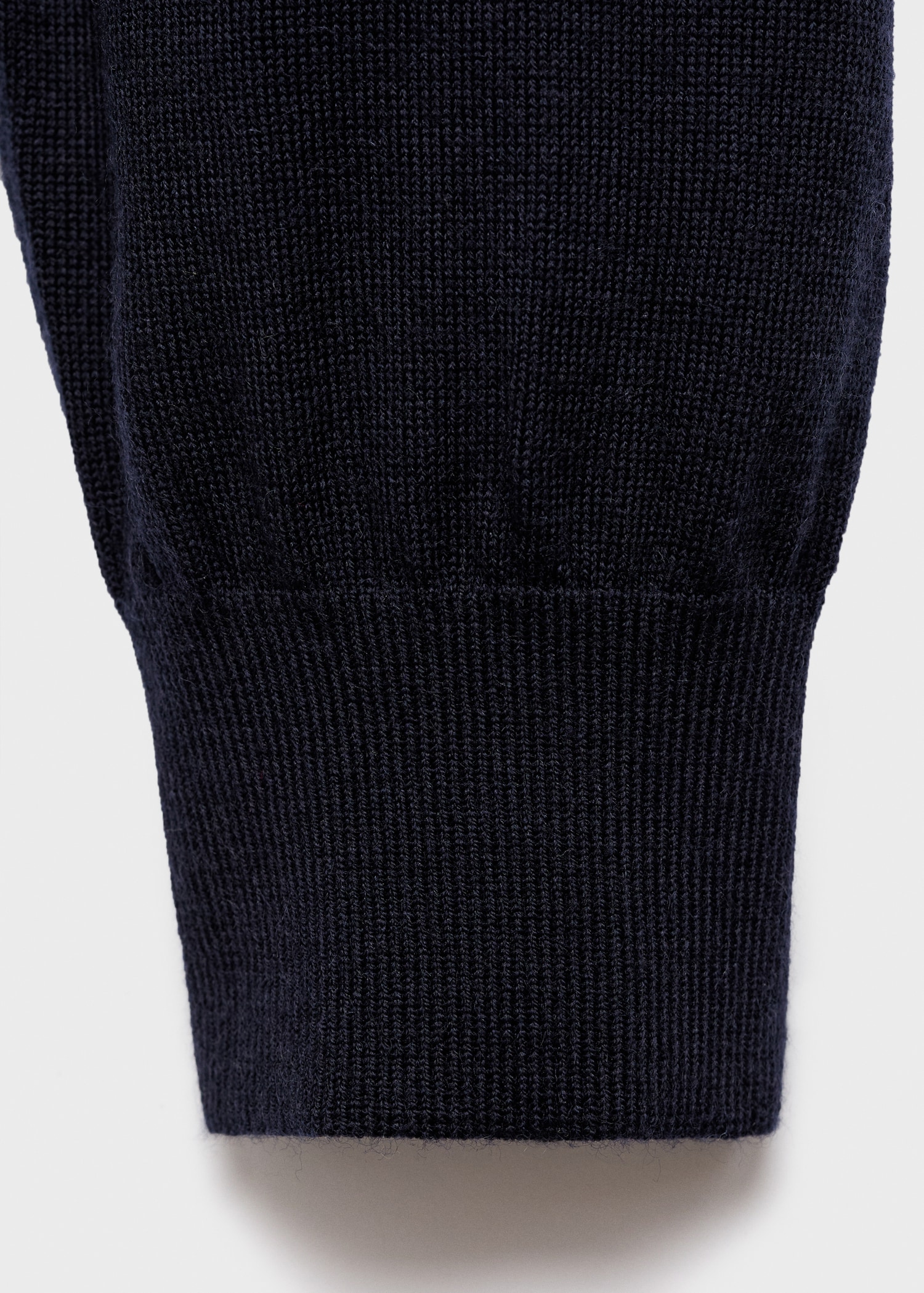 Online Exclusive. Regular fit. 100% wool fabric. V-neck. Long sleeves with elastic cuffs. Front button closure. Ribbed collar, sleeves and hem. ESSENTIALS: Made to last. We have strengthened our quality standards by adding new endurance tests to our garments. Designed with careful consideration of their construction, they are even more durable, versatile and timeless
