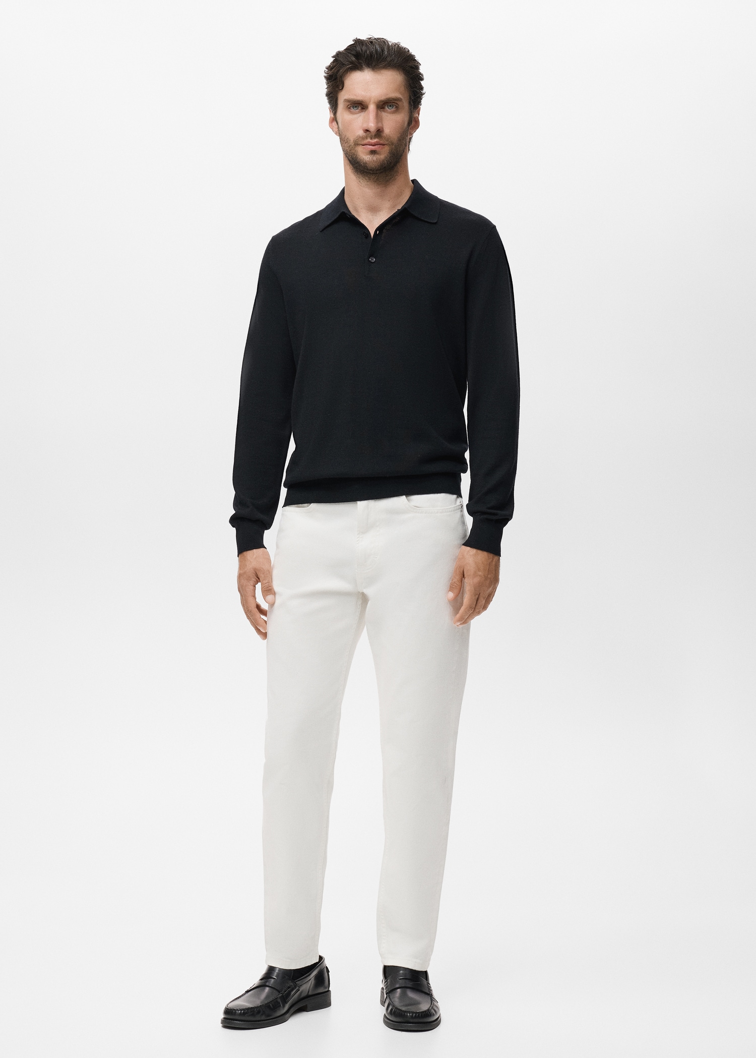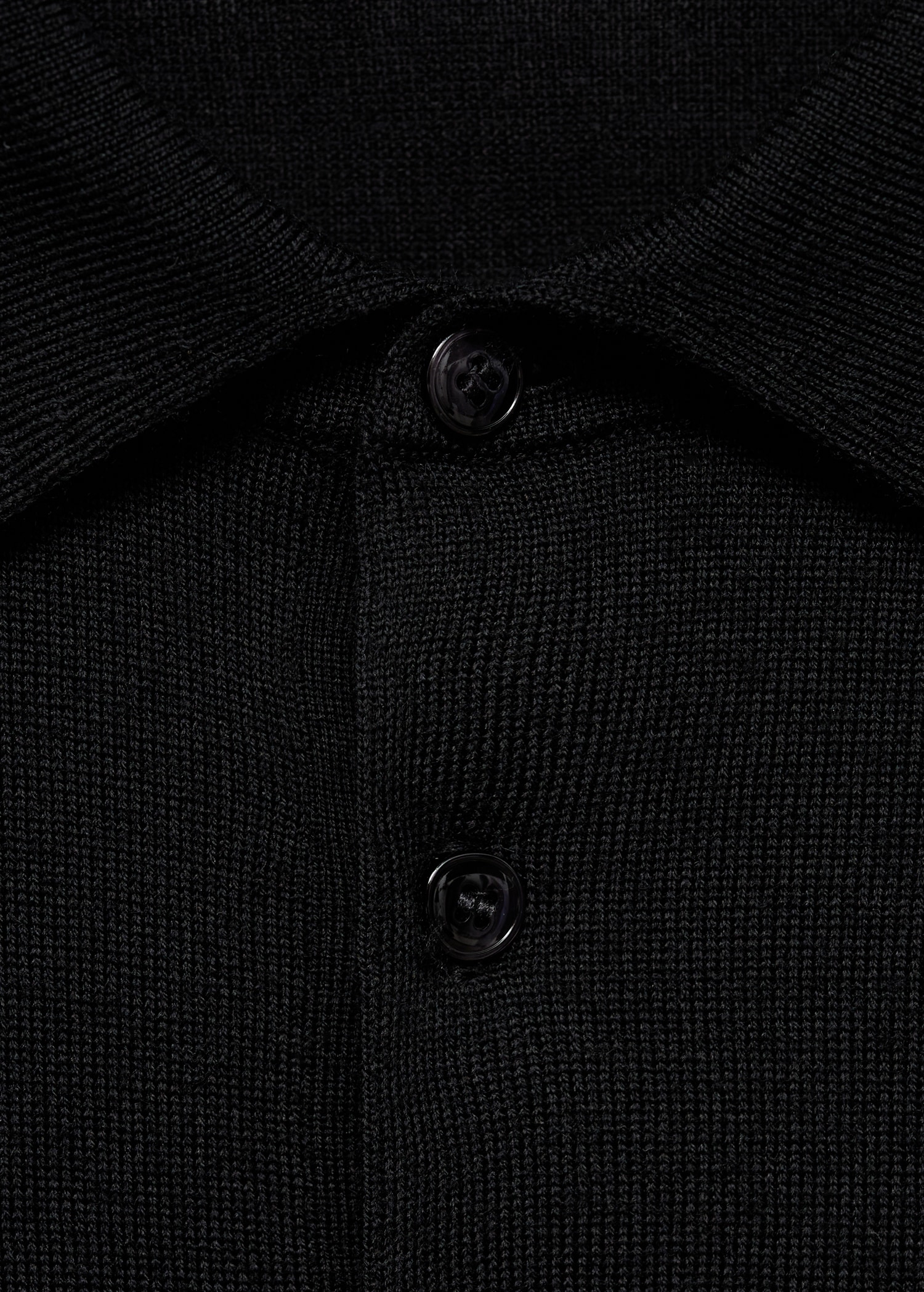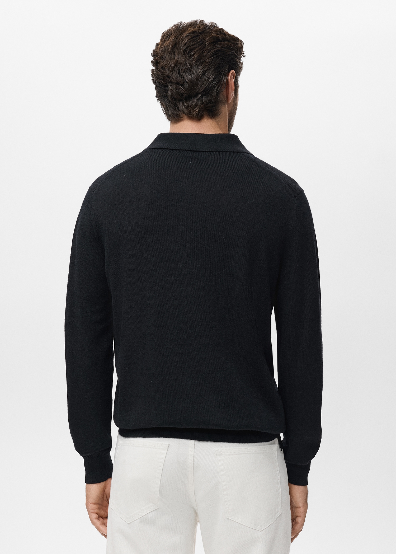 Regular fit. 100% merino wool. Fine knit fabric. Polo collar with button closure. Long Sleeve. Untrimmed sleeves. Elastic cuffs. ESSENTIALS: Made to last. We have strengthened our quality standards by adding new endurance tests to our garments. Designed with careful consideration of their construction, they are even more durable, versatile and timeless