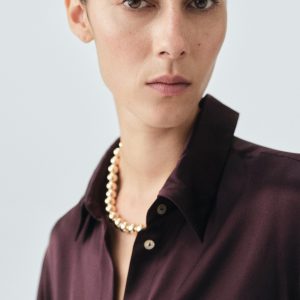Crafted from 100% silk fabric, this garment features an oversized design with a shirt collar. It has long sleeves with buttoned cuffs and a front closure with concealed buttons. Selection Collection. A selection of refined garments, made with quality materials to create a feminine and contemporary closet