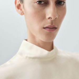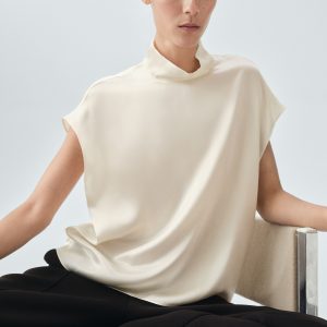 100% silk satin turtleneck blouse