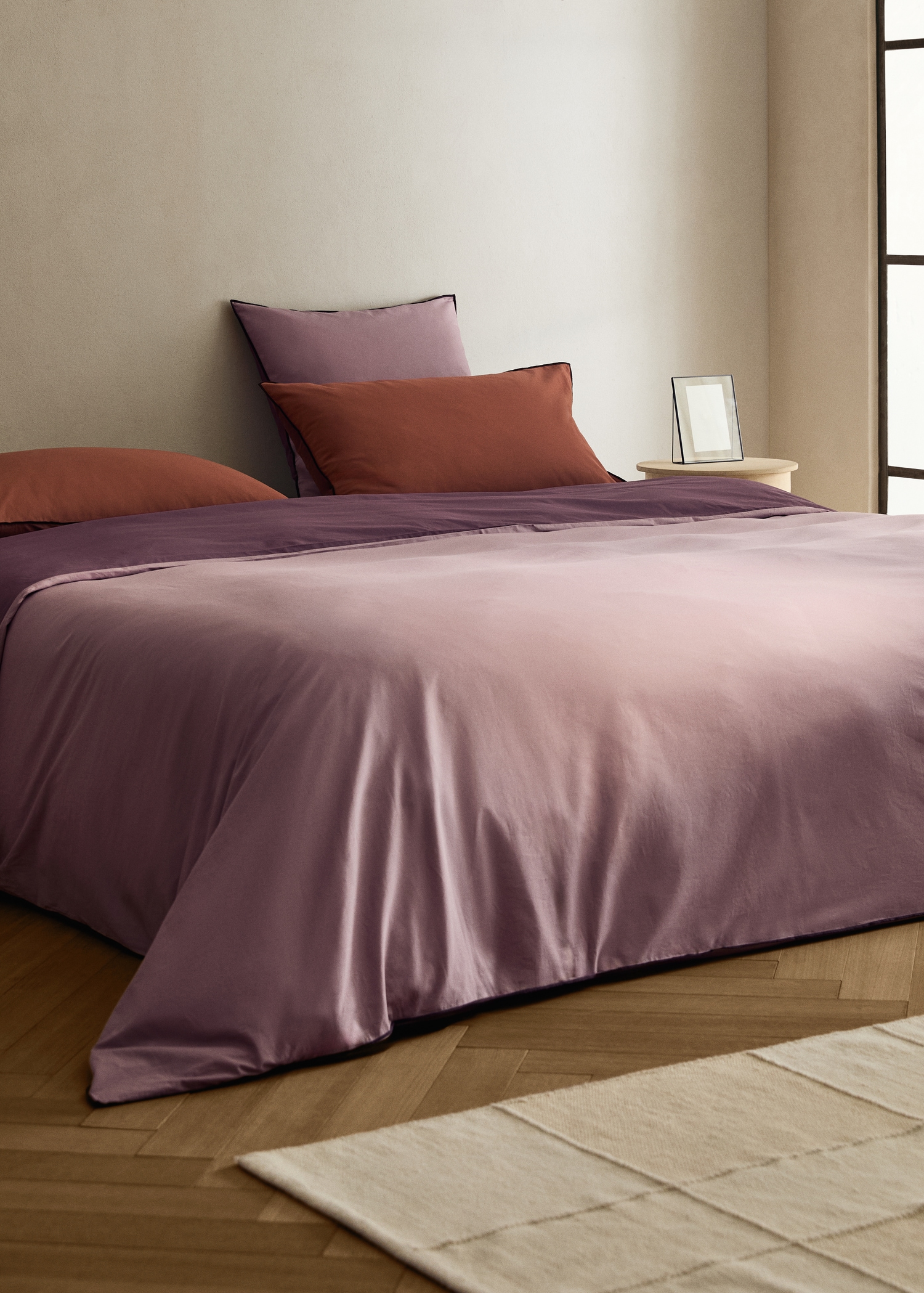 Bed 200 cm. Dimensions: 290×260 cm. 100% Cotton. Percale cotton with contrasting overlock finish. Reversible. 200 cotton threads offering maximum softness, durability, and breathability, providing a sensation of lightness and smoothness to the touch. Adds a cozy and warm touch. Coordinates with more products from the collection. Available in various colors