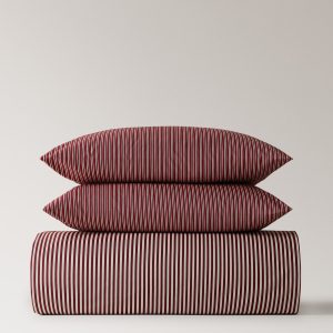 100% cotton percale fabric. Size: 220x220cm. Duvet cover made from 200-thread count percale cotton, known for its softness, freshness and durability. Its reversible stripe design allows you to easily change the look of the bed depending on which side of the duvet cover is used. Ideal for the winter season. Christmas Collection