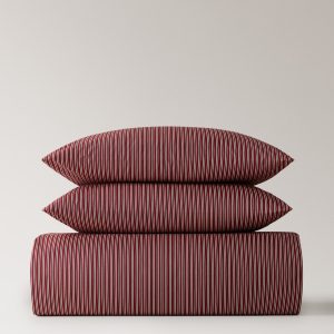 100% cotton percale fabric. Size: 180×200 cm. Duvet cover made from 200-thread count percale cotton, known for its softness, freshness and durability. Its reversible stripe design allows you to easily change the look of the bed depending on which side of the duvet cover is used. Ideal for the winter season. Christmas Collection