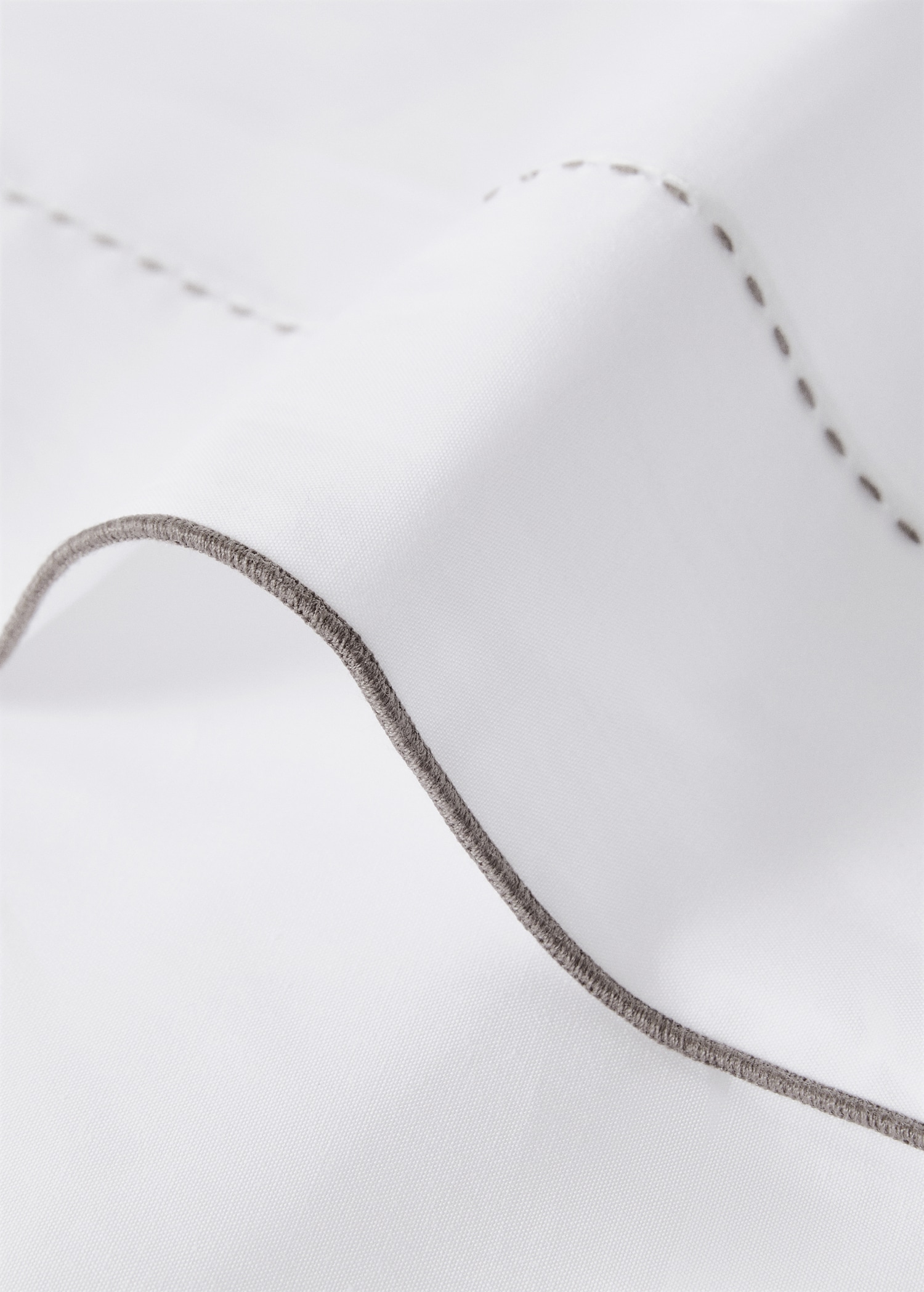 100% Cotton. Percale cotton fabric. 200 cotton threads offering maximum softness, durability, and breathability, providing a sensation of lightness and smoothness to the touch. 90cm Bed. Size: 63x110in. Overlock detail. Backstitched detail. Made in Portugal. Coordinates with more products from the collection
