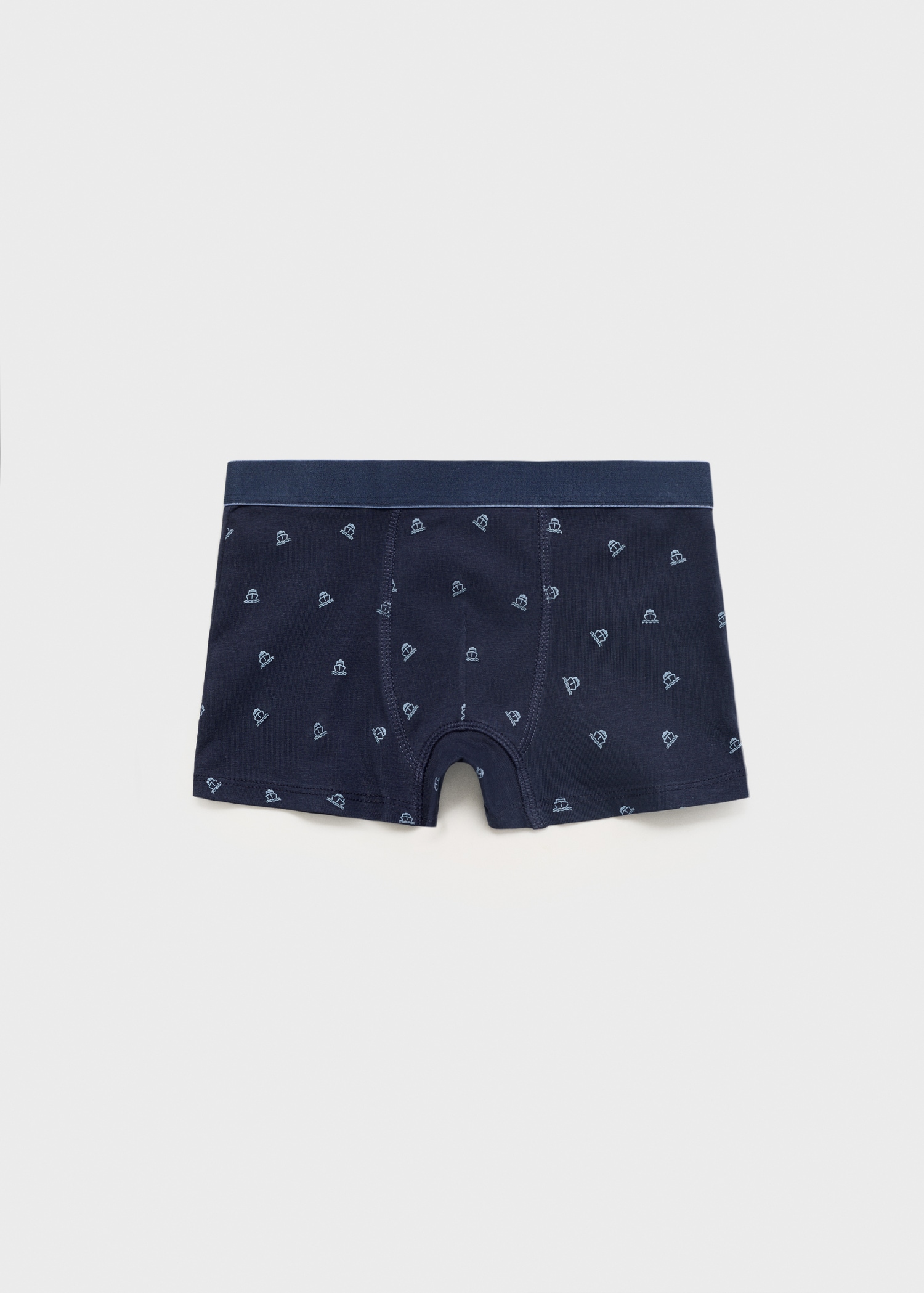 Pack of 3. Boxer type. Cotton fabric. Stretch fabric. Combined print. Elastic waistband. Fabric with cotton. Straight Design. Printed design