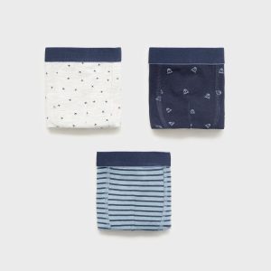 Pack of 3. Cotton fabric. Stretch fabric. Combined print. Elastic waist. Boxer type. Pack of three. Straight Design. Short design. Combined print. Elastic waistband