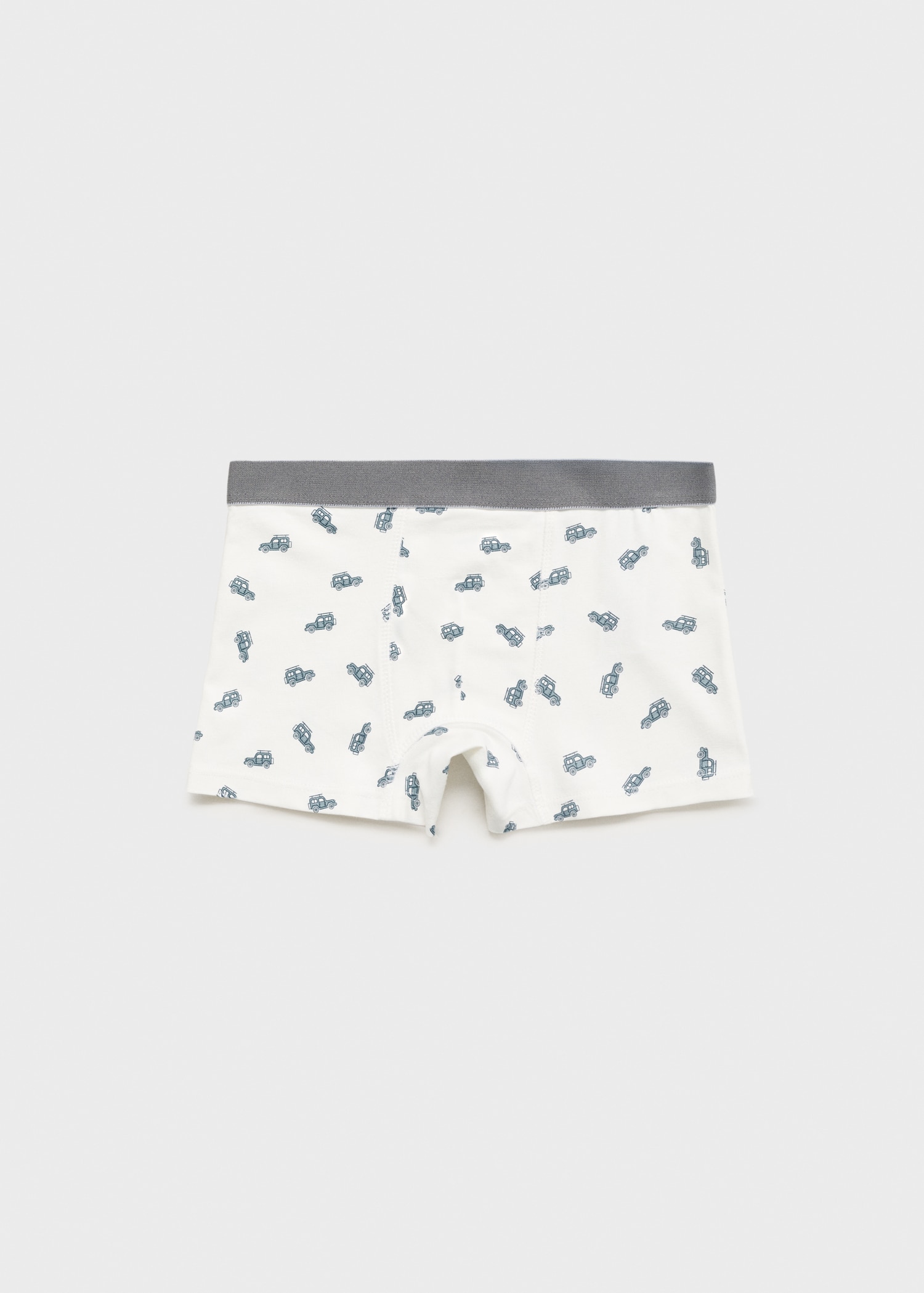 Pack of 3. Cotton fabric. Stretch fabric. Boxer type. Combined print. Elastic waistband. Pack of three. Short design. Elastic band