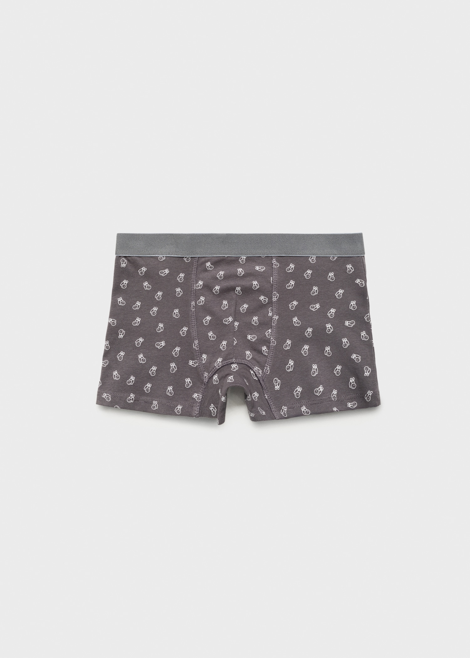 Pack of 3. Boxer type. Cotton fabric. Stretch fabric. Combined print. Elastic waistband. Fabric with cotton. Straight Design. Printed design