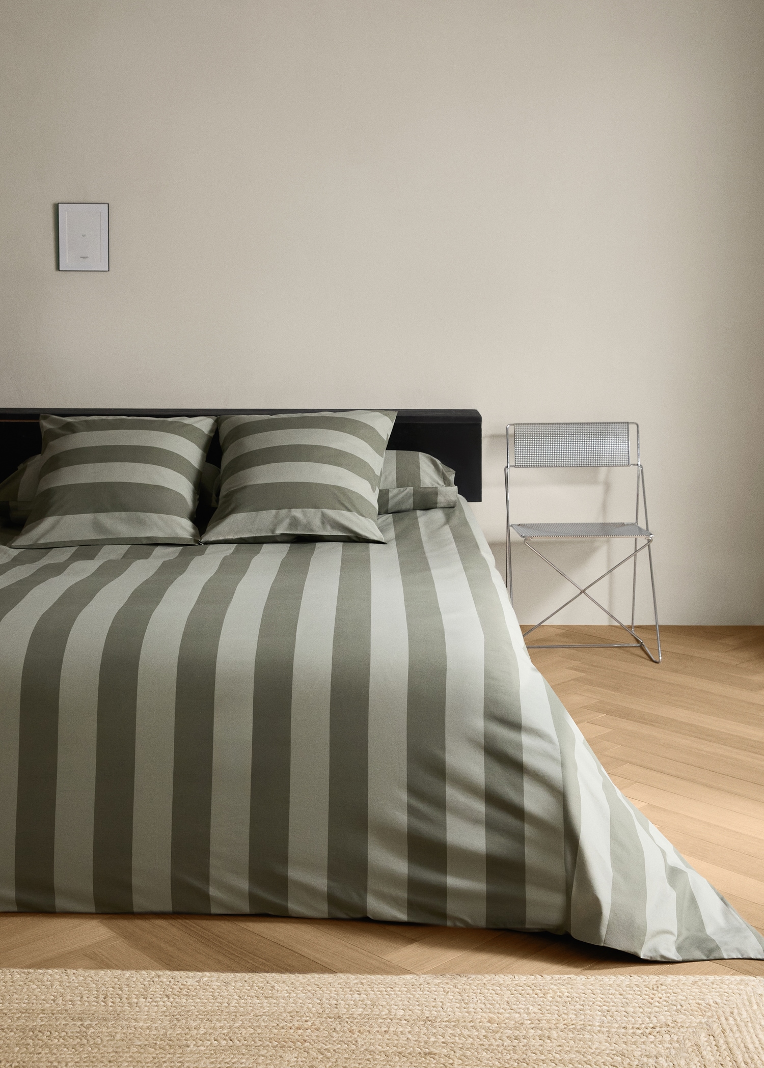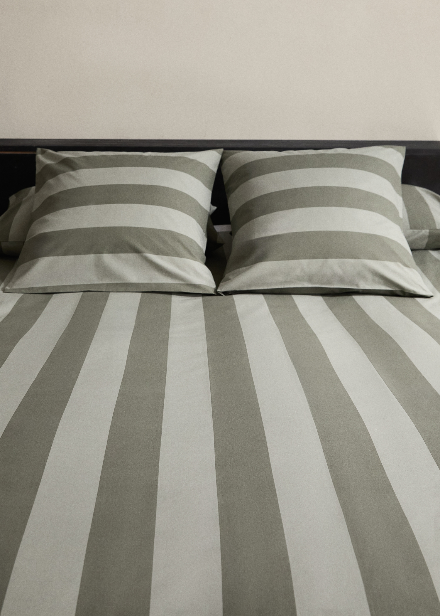 Bed 180/200cm. Size: 102.36×94.49in. 100% Cotton. 200 thread count. Striped pattern. Fresh, soft, durable, breathable, versatile. Two-tone design. Ideal for those looking to combine style and comfort in their resting space. Adds a sophisticated and cozy touch. Coordinates with more products from the collection
