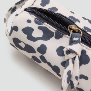Animal print fabric. Round shape. Zipper closure. Matching backpack. 7.87×2.76×2.76 in (Length x Height x Width)