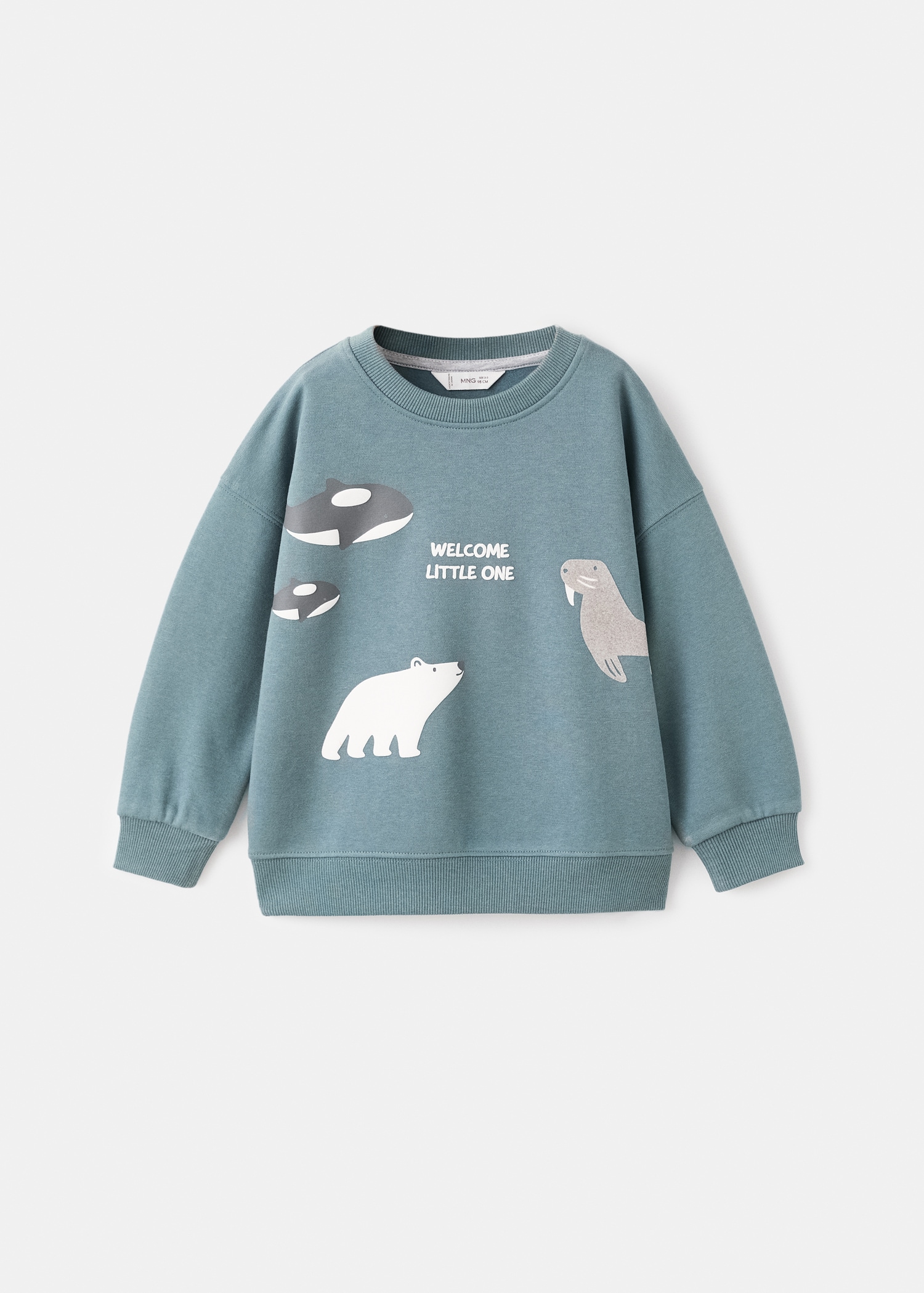 Cotton fabric. Quilted cotton interior. Straight Design. Crew neck. Long Sleeve. Animal print. Ribbed neck, cuffs, and hem