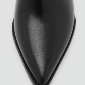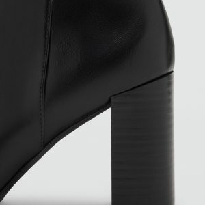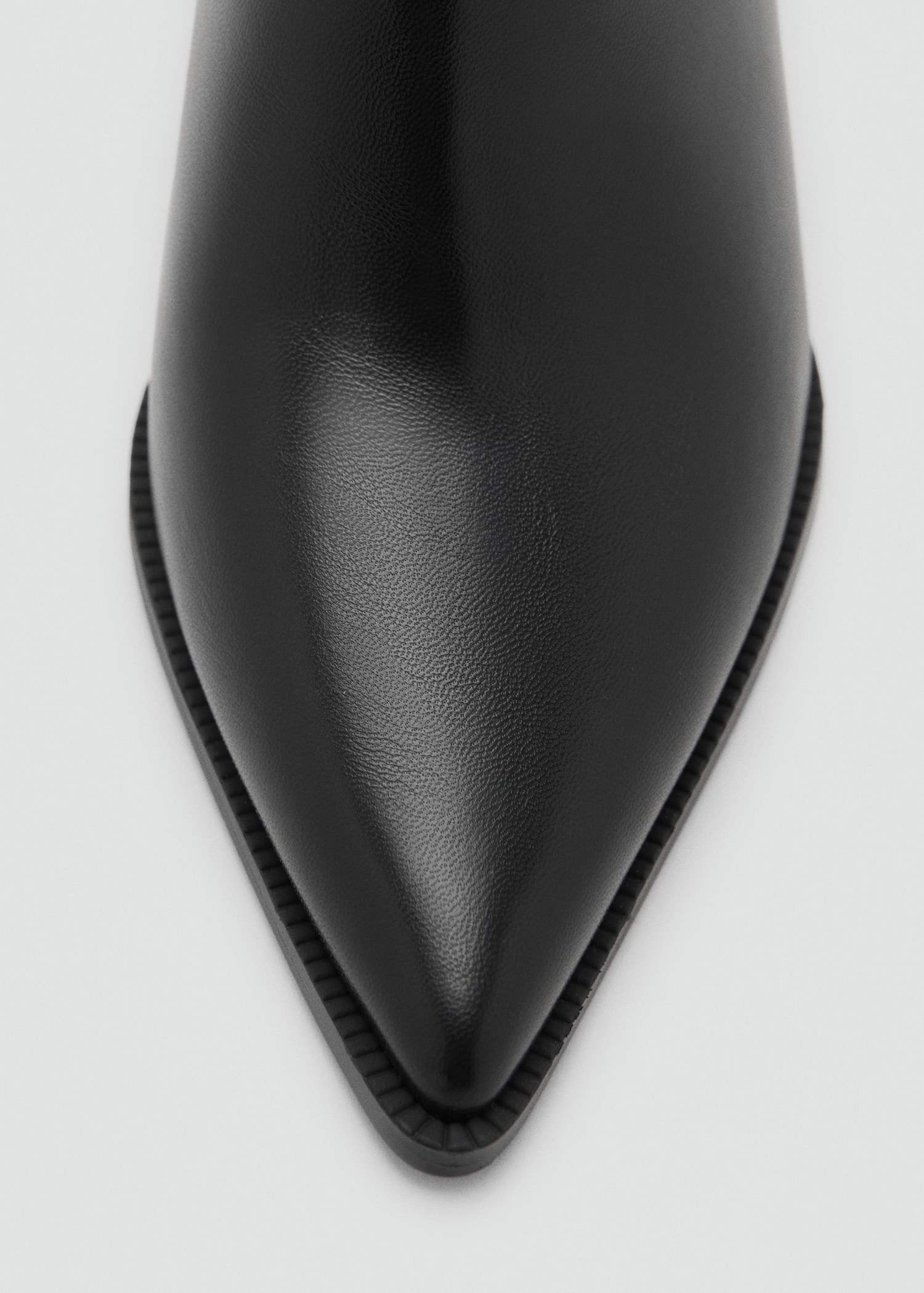 Leather effect. Pointed. Block heel. Side zip closure. Inner lining. 3.35 in heel