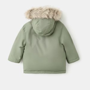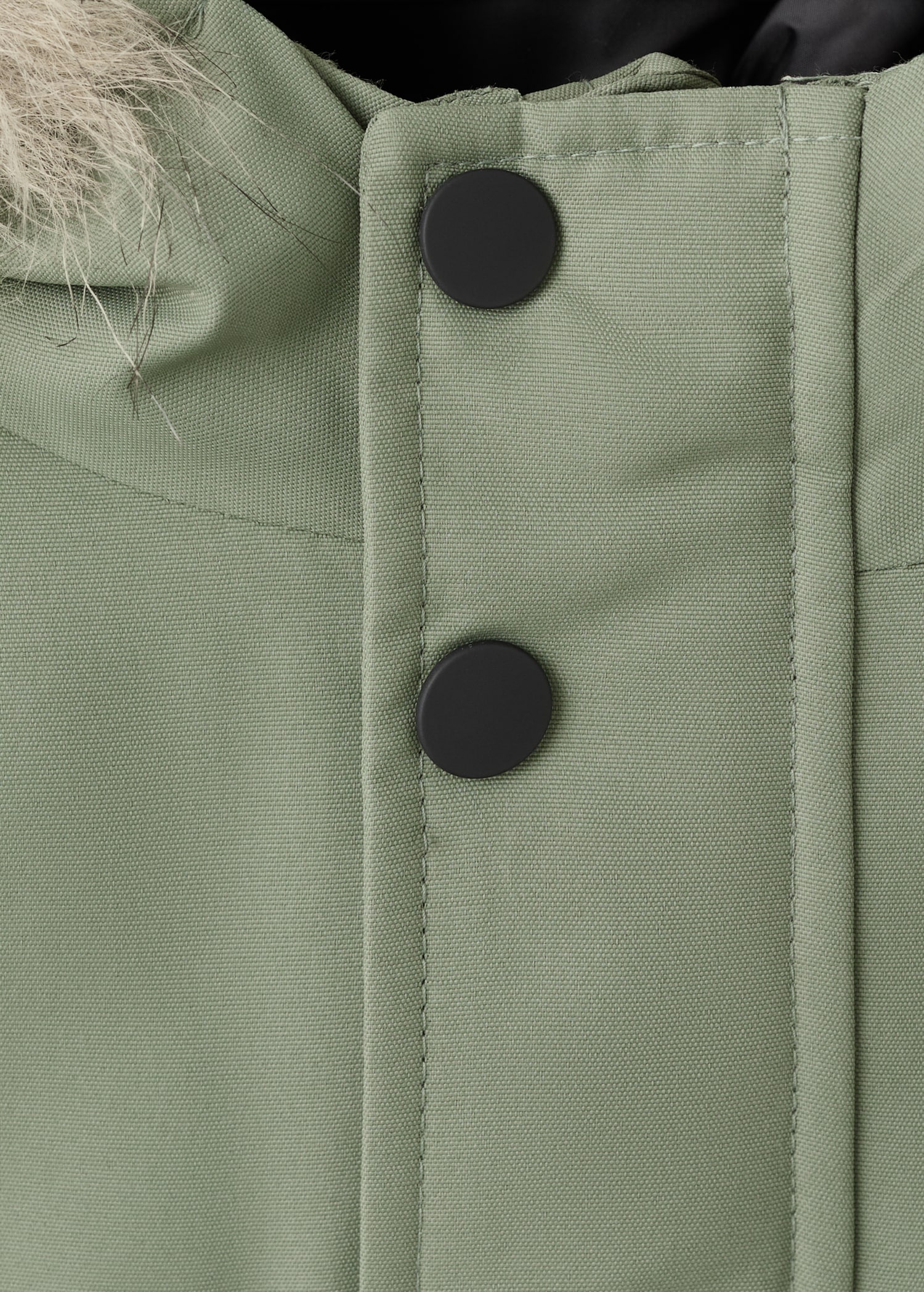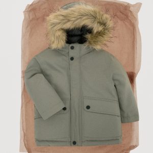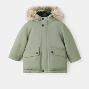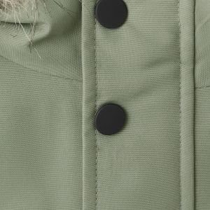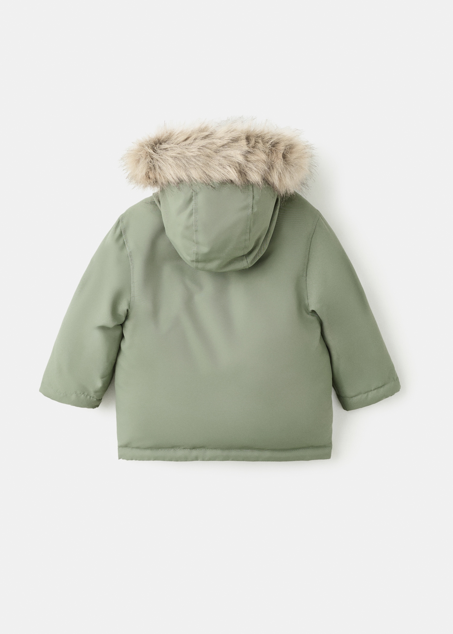 Quilted fabric. Straight Design. With hood. Hood with synthetic hair detail. Long Sleeve. Button and zipper closure. Two side pockets
