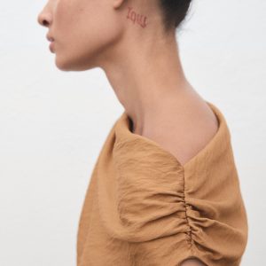 Asymmetric draped gown