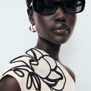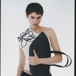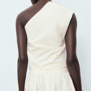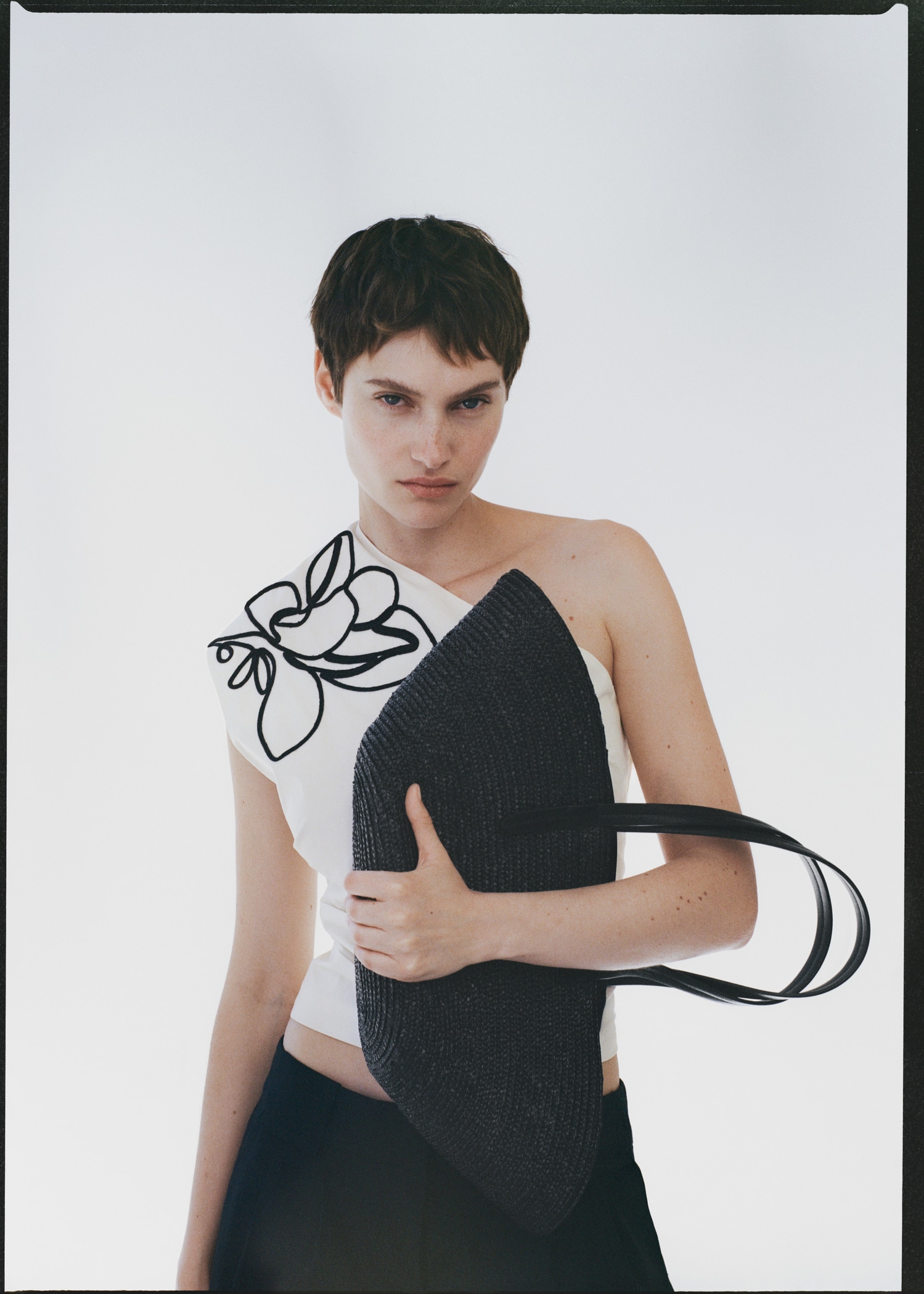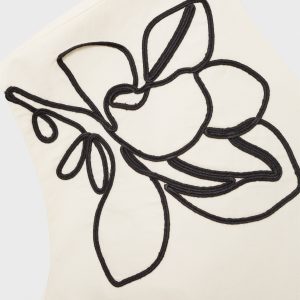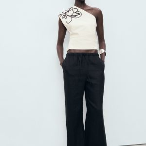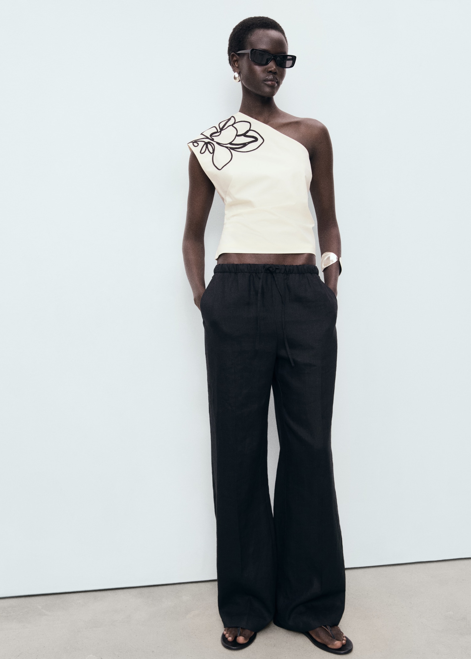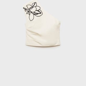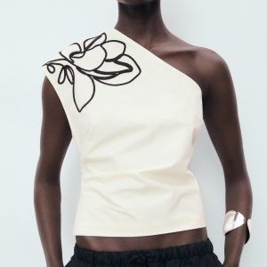 Asymmetrical flower-embroidered top