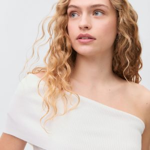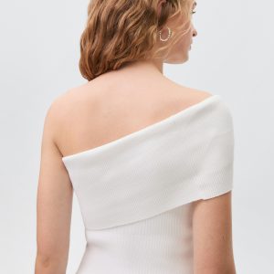 Cotton fabric. Fine knit fabric. Off-shoulder design. Asymmetric design