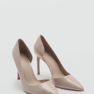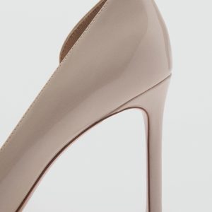Patent leather effect. Asymmetric design. Pointed. High heels. Heel height is 10 cm. No closure. Inner lining