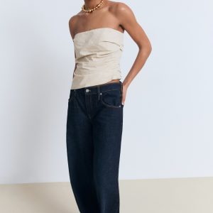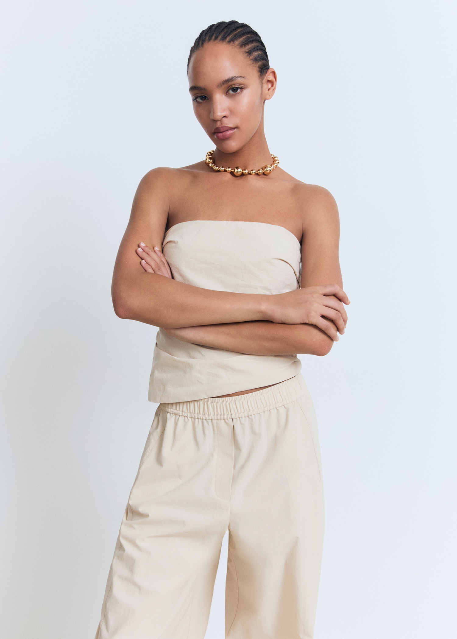 Crafted from a 100% cotton fabric, this top features a fitted and asymmetrical design. Its strapless bandeau style is complemented by side ruching and a side zipper fastening. Ideal for a total look