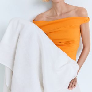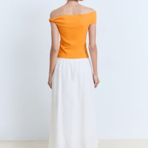 This strapless top is the epitome of laid-back sophistication, with its fitted and asymmetrical design that captures the essence of modern style. The side draped detail adds a touch of dynamic texture, making it an essential piece for those seeking an elegant yet effortless look