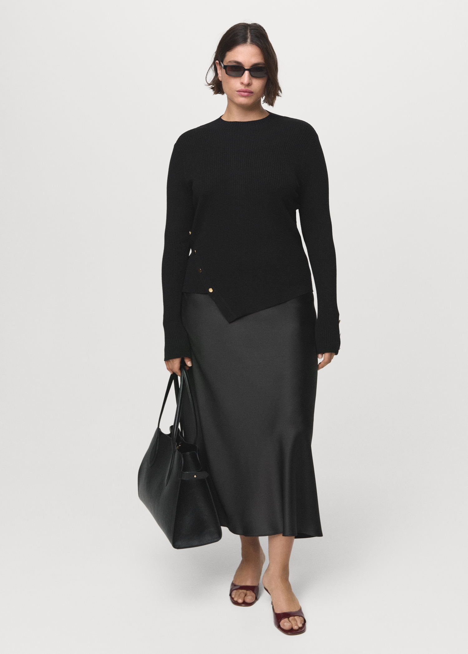 Asymmetrical sweater with buttons