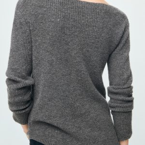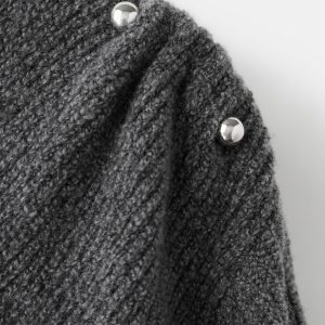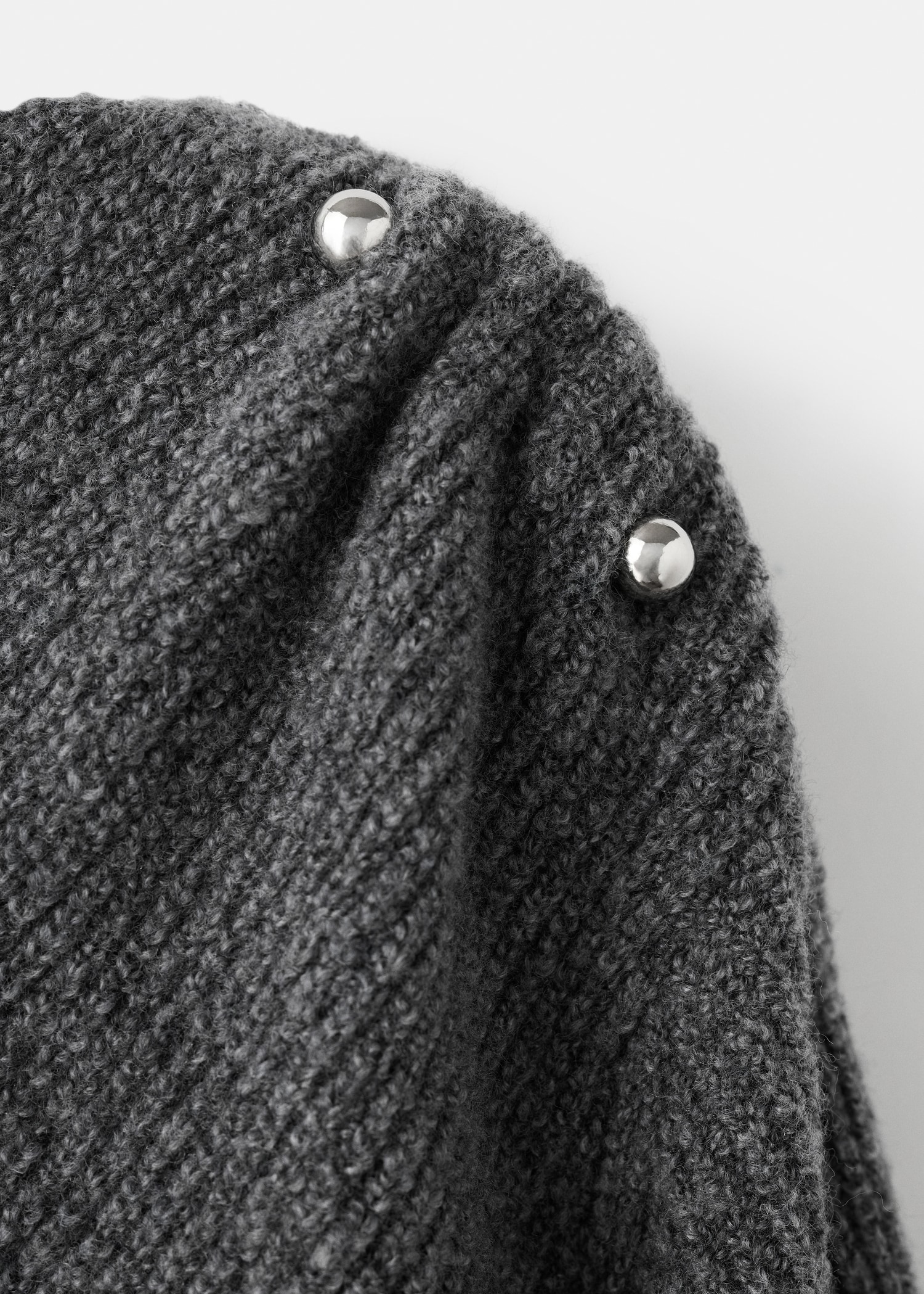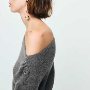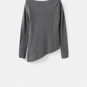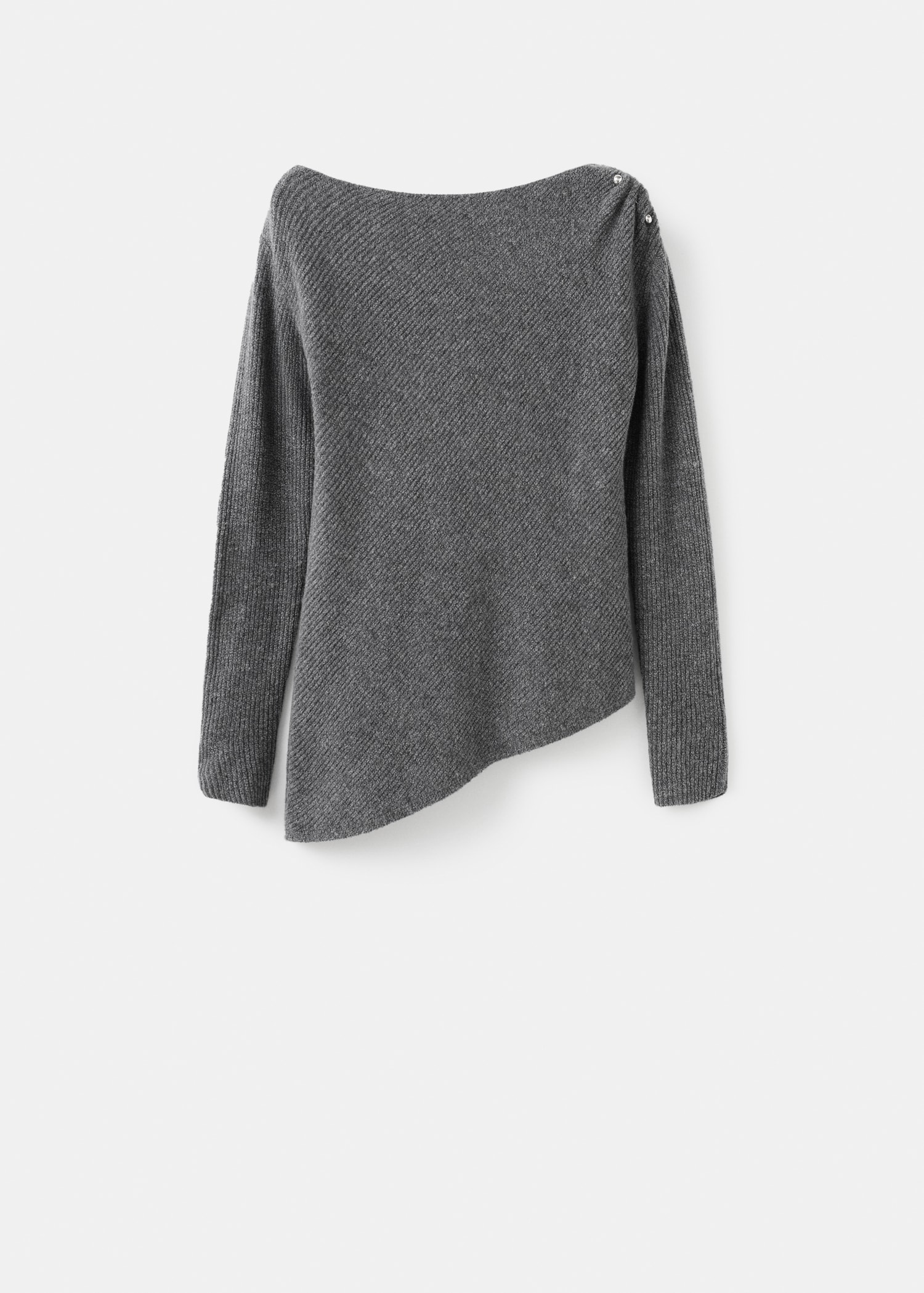 Crafted from medium-knit fabric, this straight design features a boat neckline and long sleeves. It stands out for its metallic detail on the shoulder and an asymmetrical hem that gives it a contemporary air