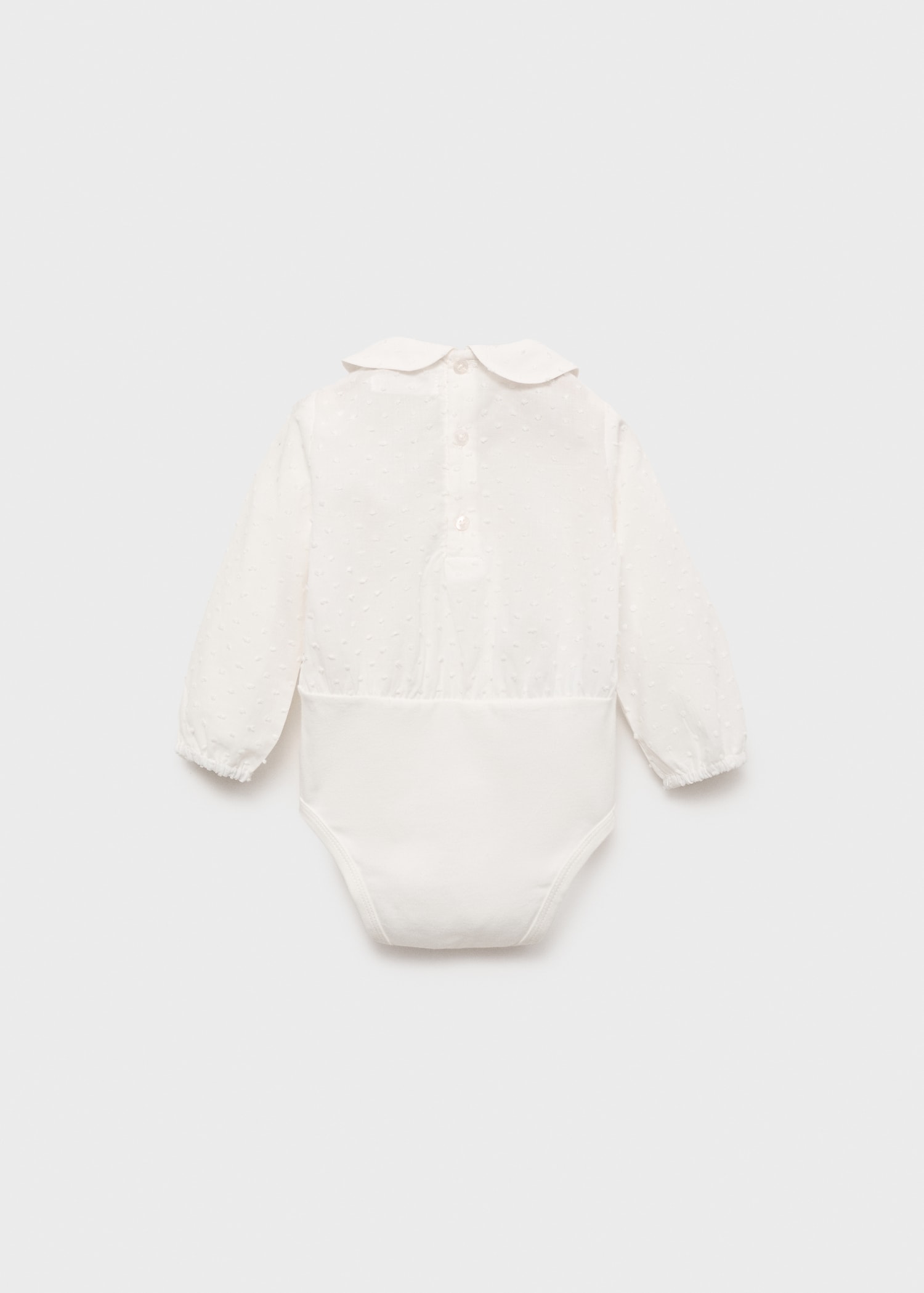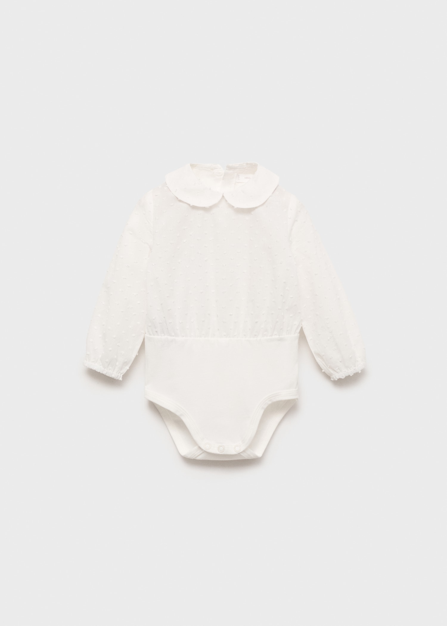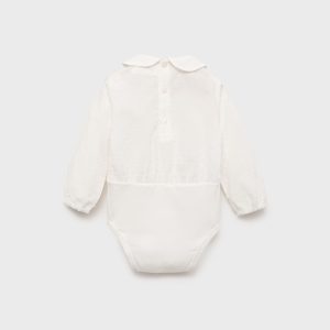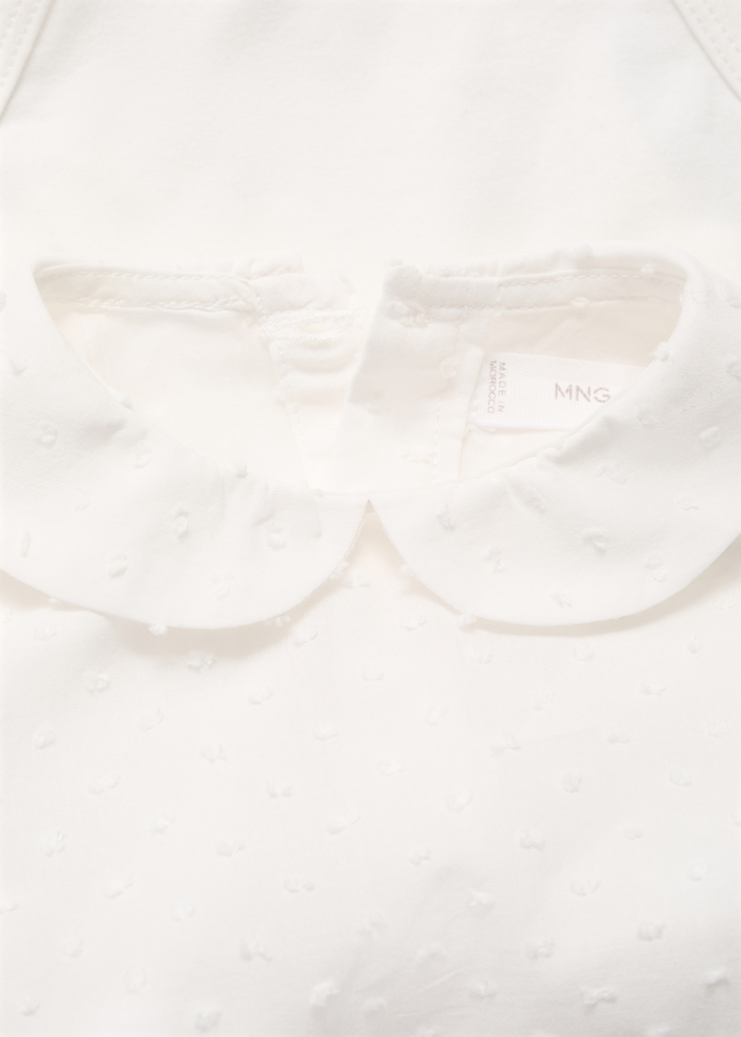 Cotton fabric. Straight Design. Bodycon design. Shirt design. Peter Pan collar. Long Sleeve. Embroidered details. Button closure at the neck. Snap button closure