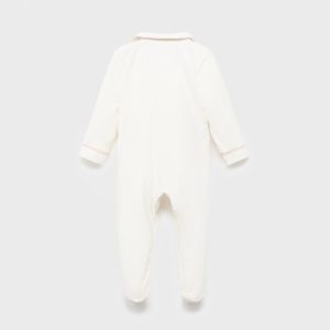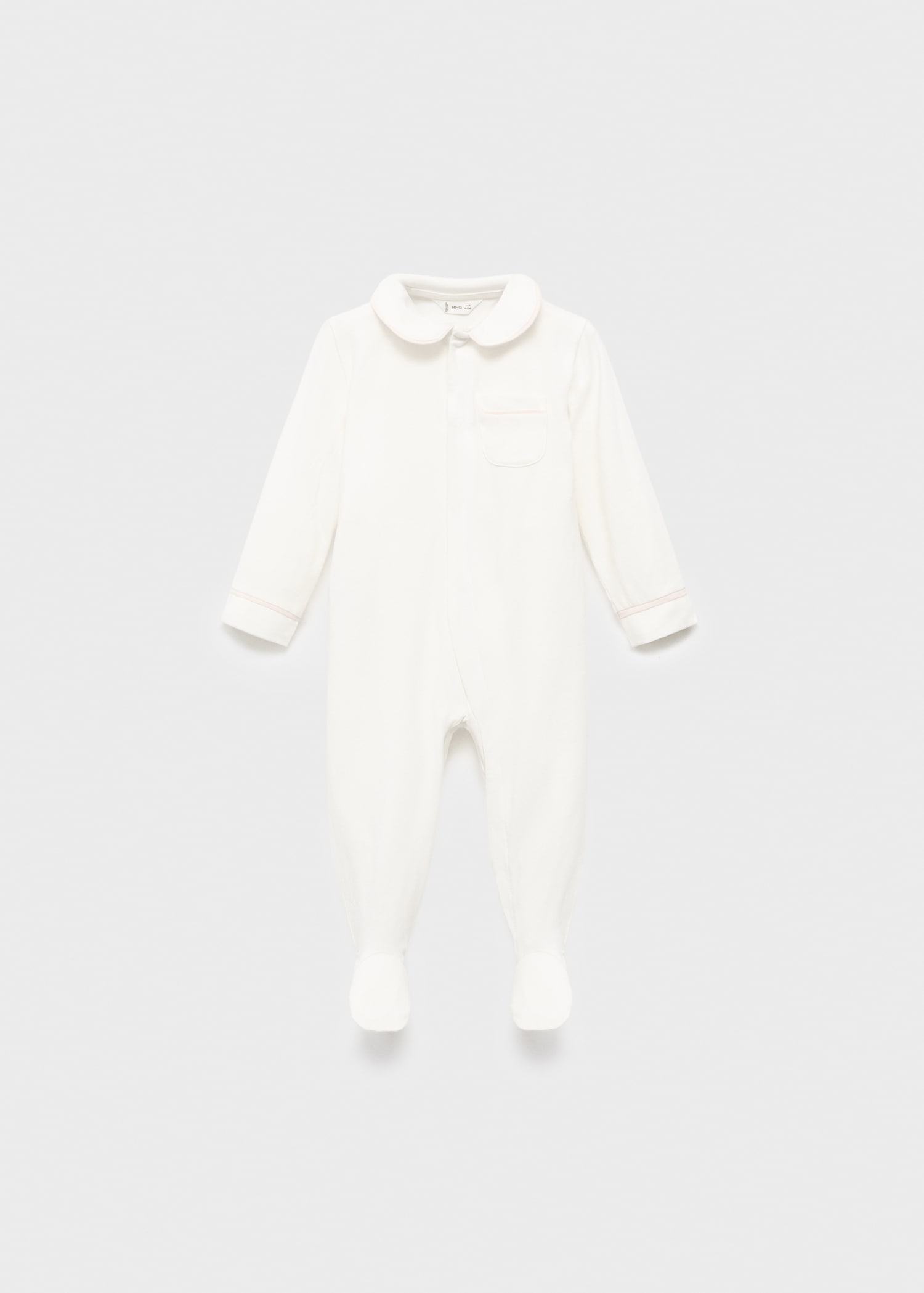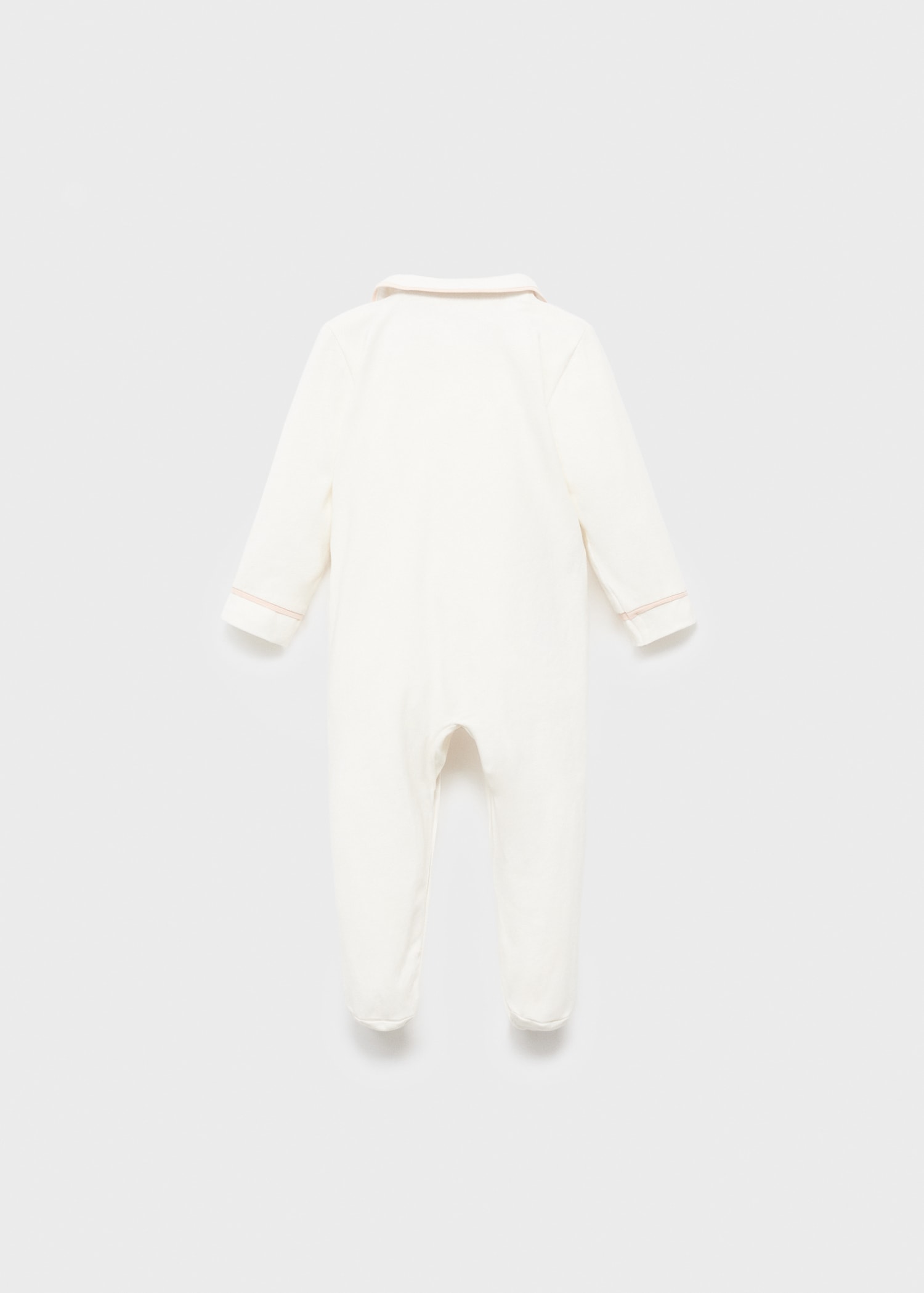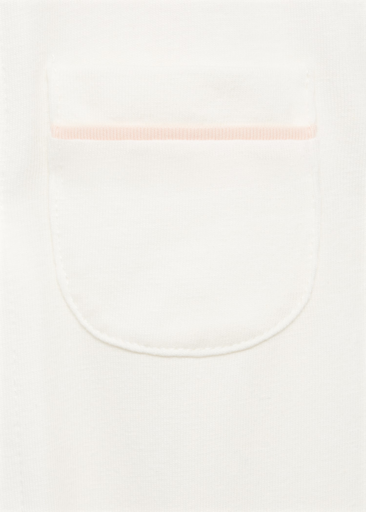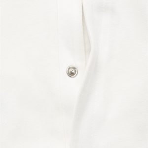 Cotton fabric. Stretch fabric. Long design. Straight Design. Peter Pan collar. Long Sleeve. Chest pocket. Edging details. Front snap button closure