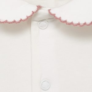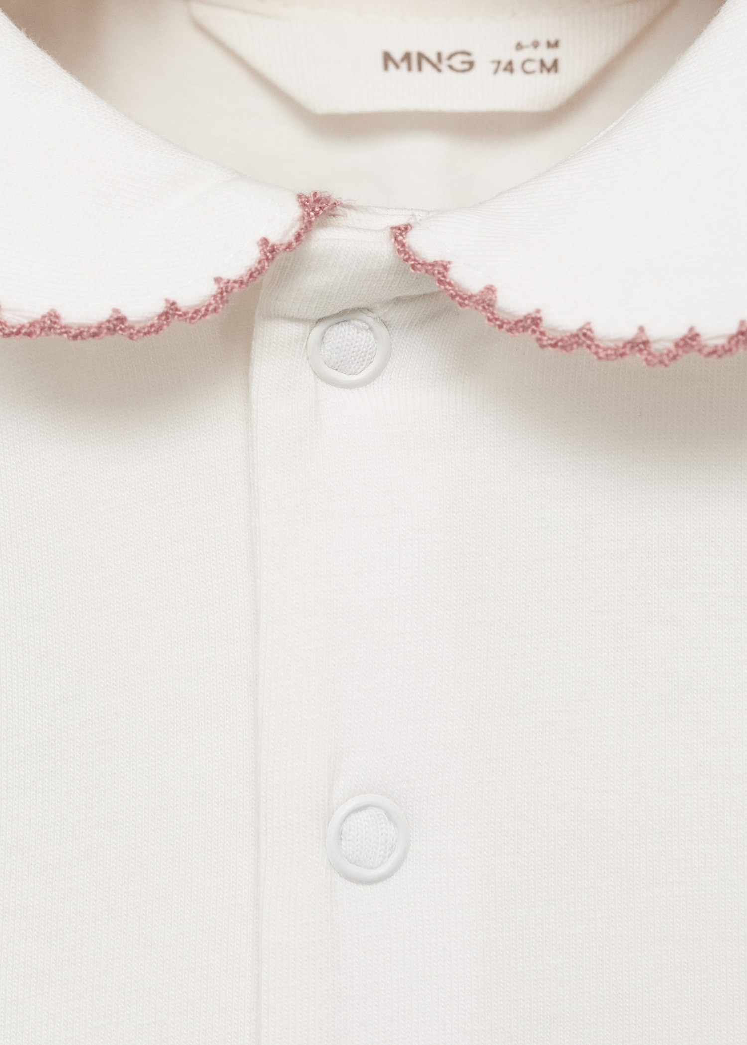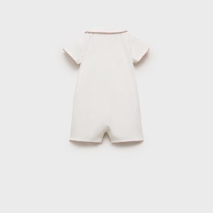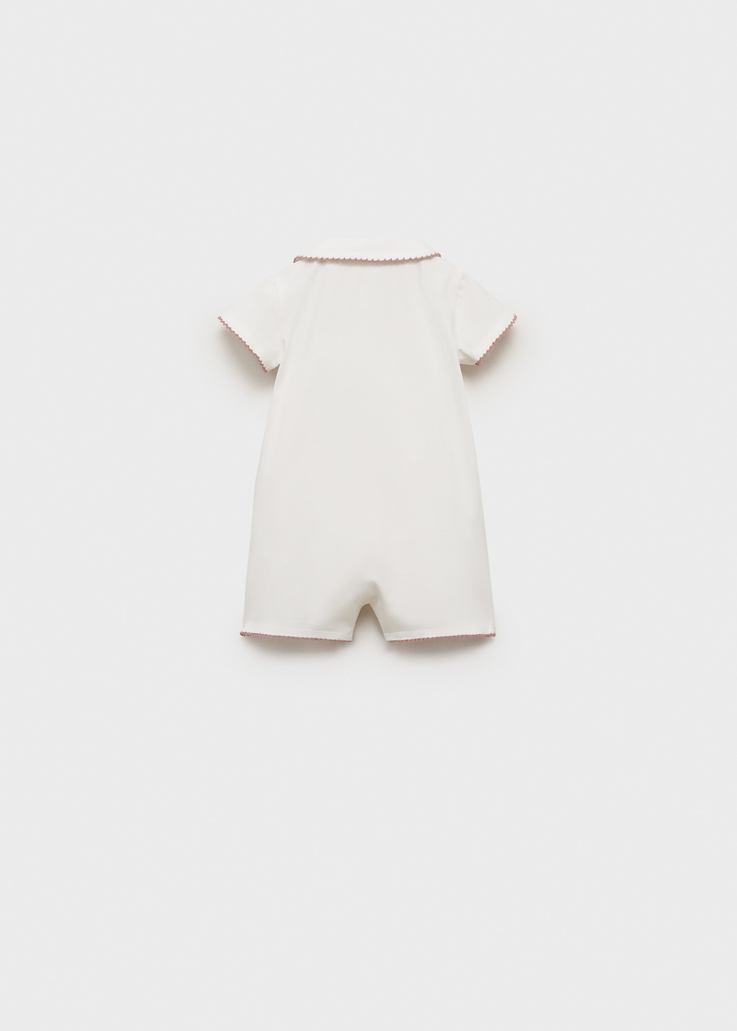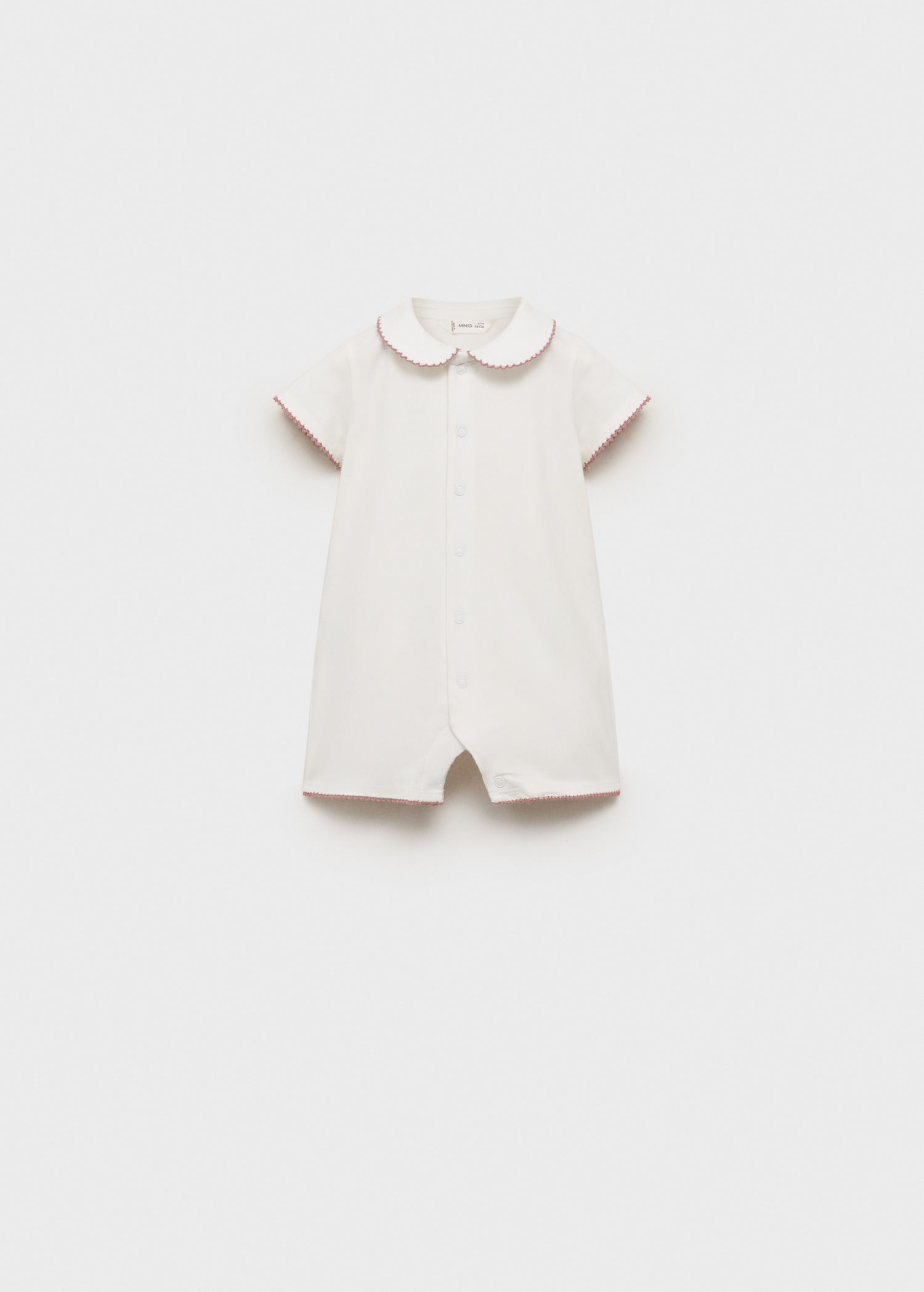 Cotton fabric. Straight Design. Short design. Babydoll collar. Short sleeve. Front button closure. Contrasting finishes