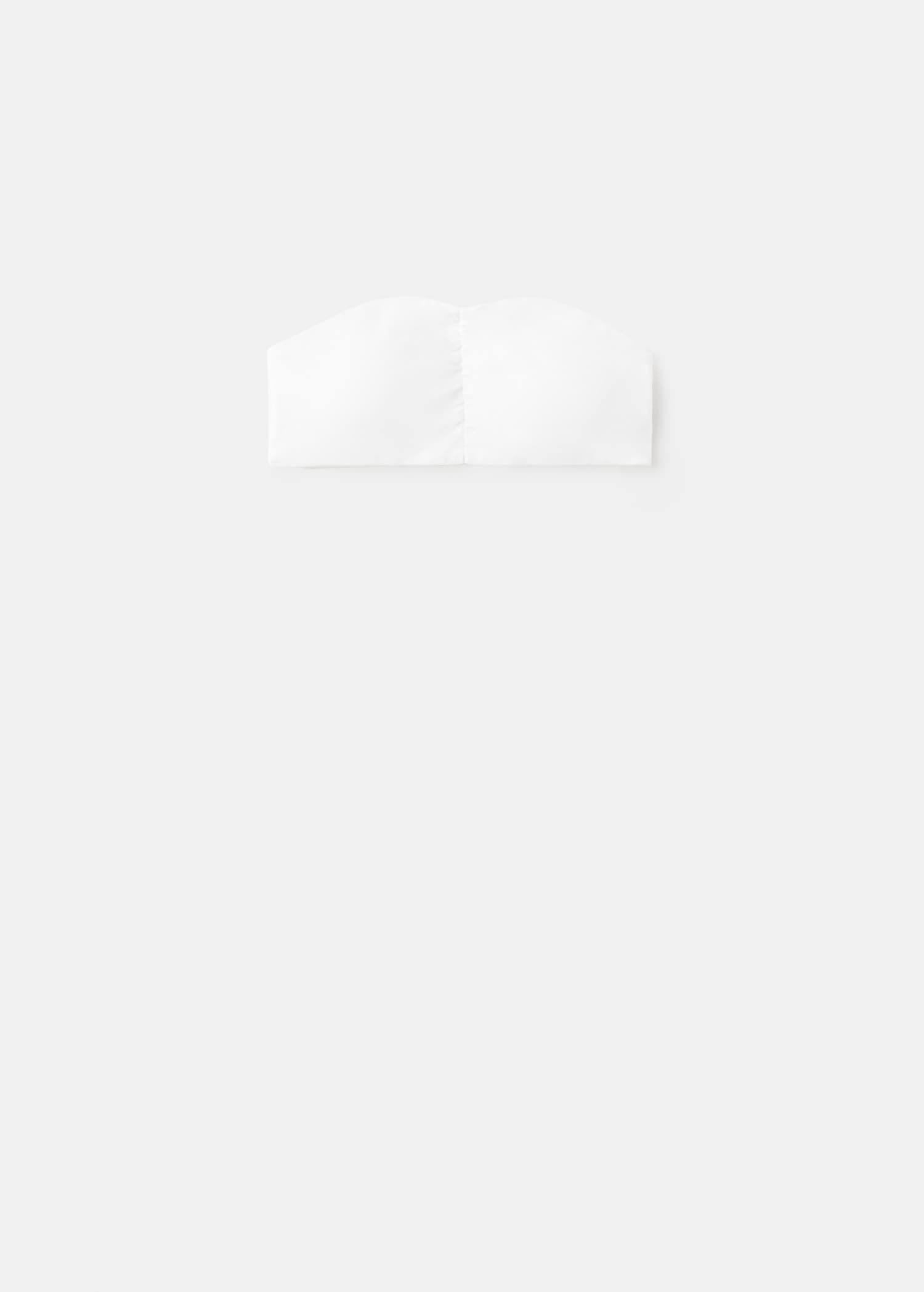 Cotton fabric. Bandeau design. Central gathered section detail. Inner silicon straps for better grip. Product type variety Push Up. Bandeau silhouette
