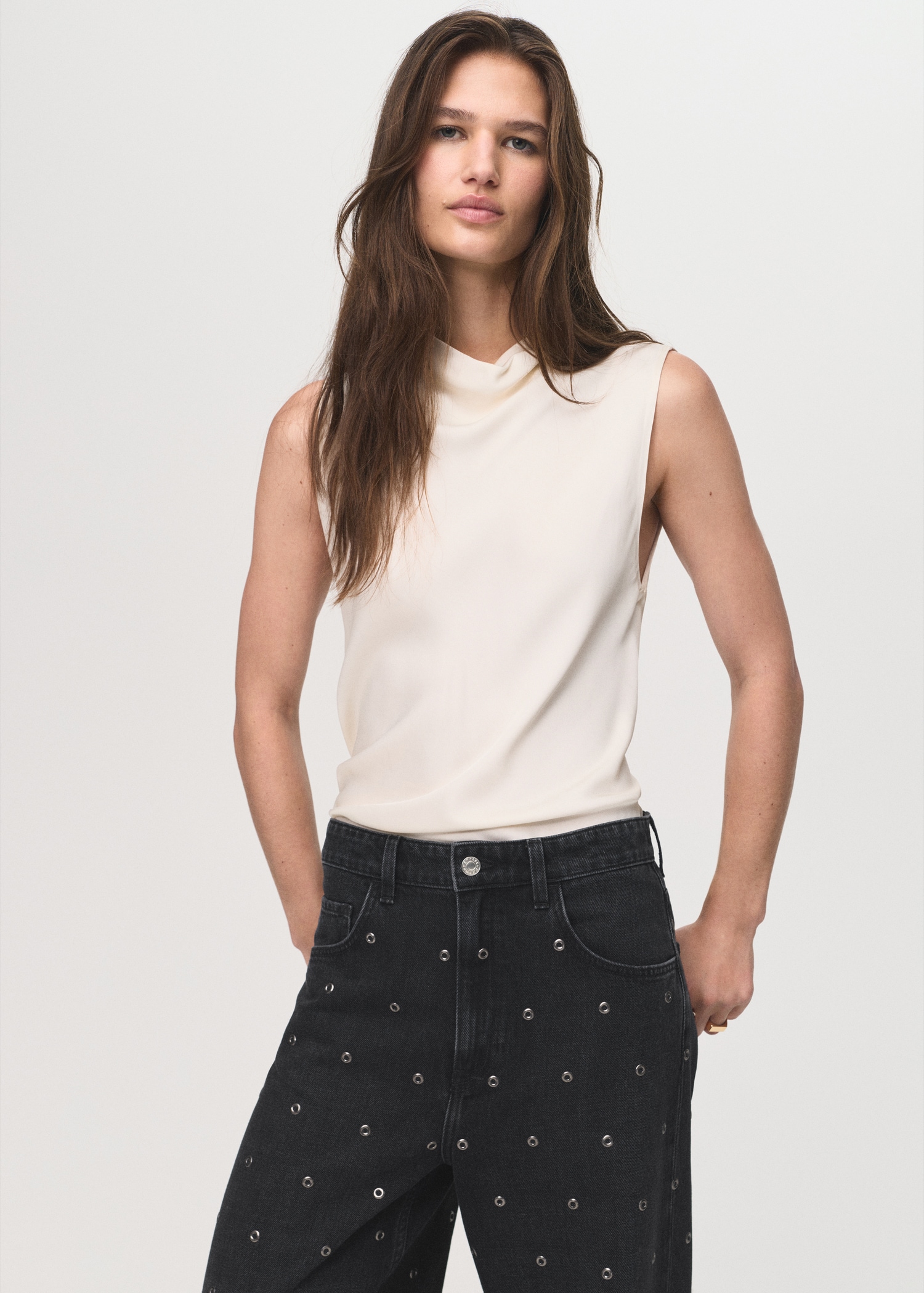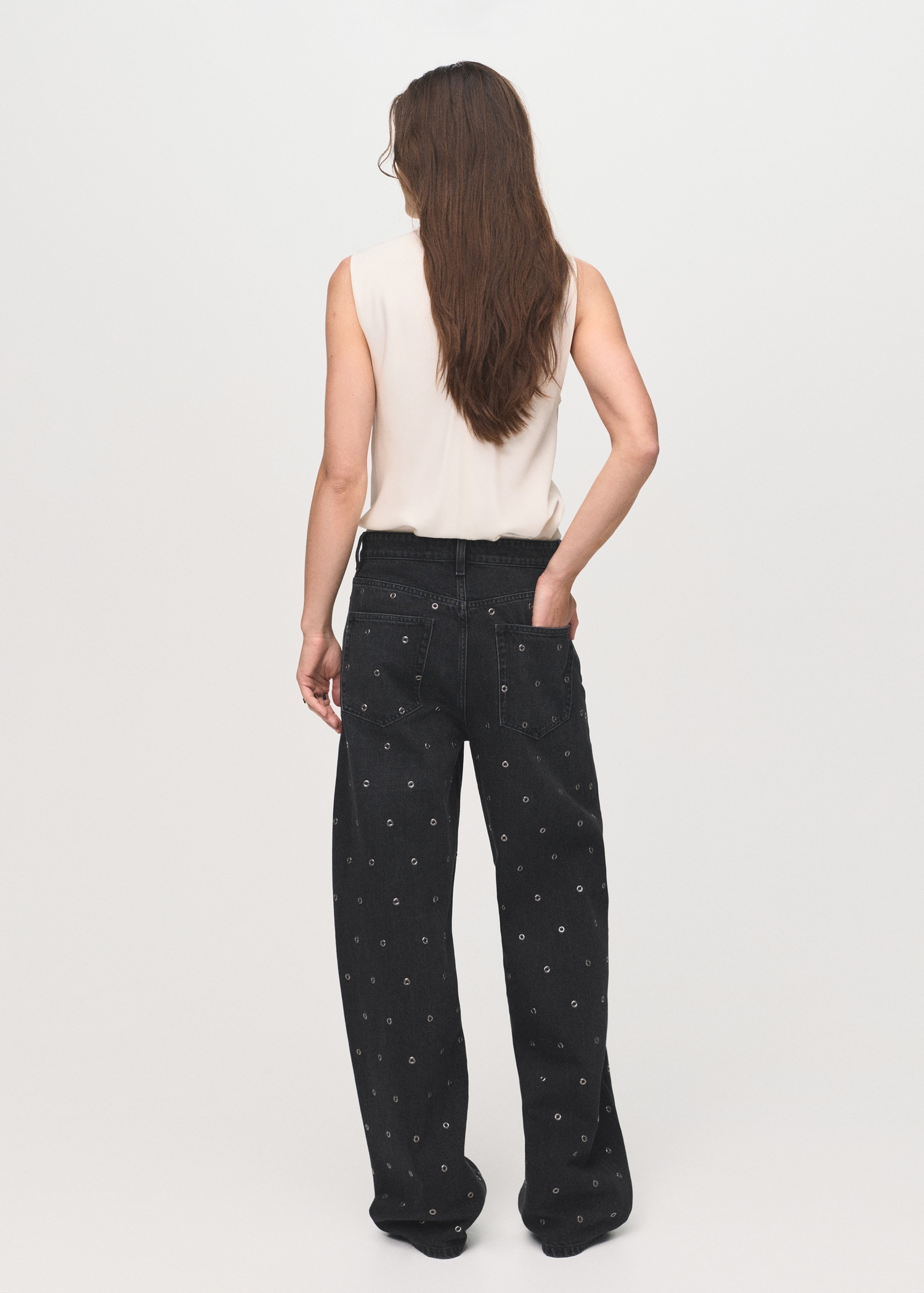 Barrel jeans with eyelets
