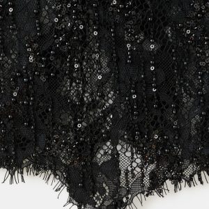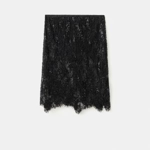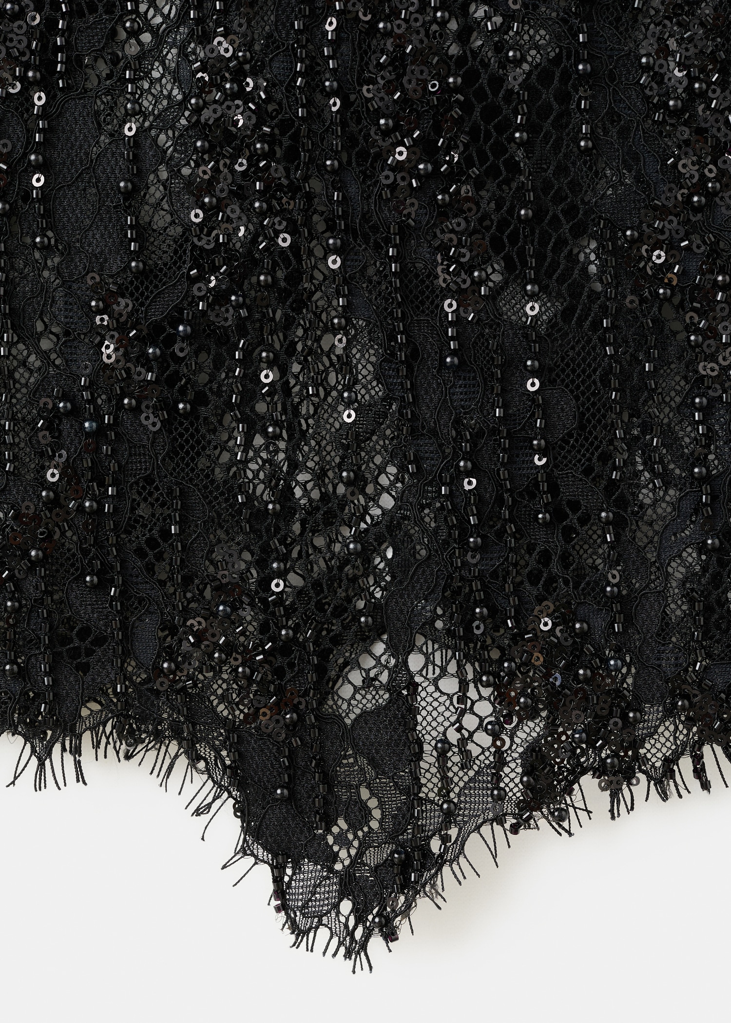 Crafted from lace fabric with sequins and bead detailing, this skirt features a design with an elastic waistband and a scalloped hem. No closure. This garment is part of our party and event collection, designed to elevate your looks for special occasions. Collection Selection.. A selection of refined garments, made with quality materials to create a feminine and contemporary closet