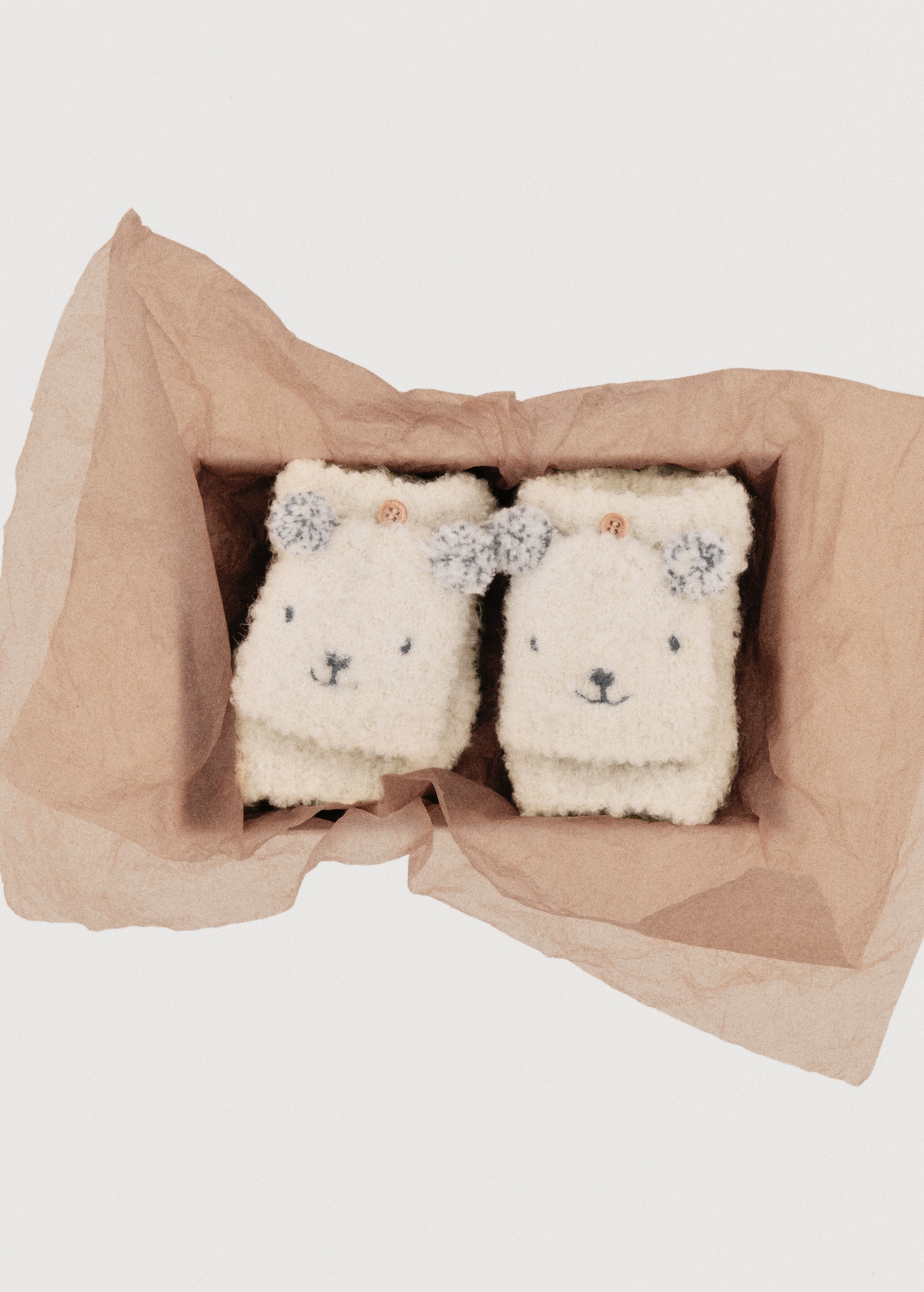 Knitted fabric. Teddy bear design. Available set. Matching hat and scarf available. 4.72×2.76 in
