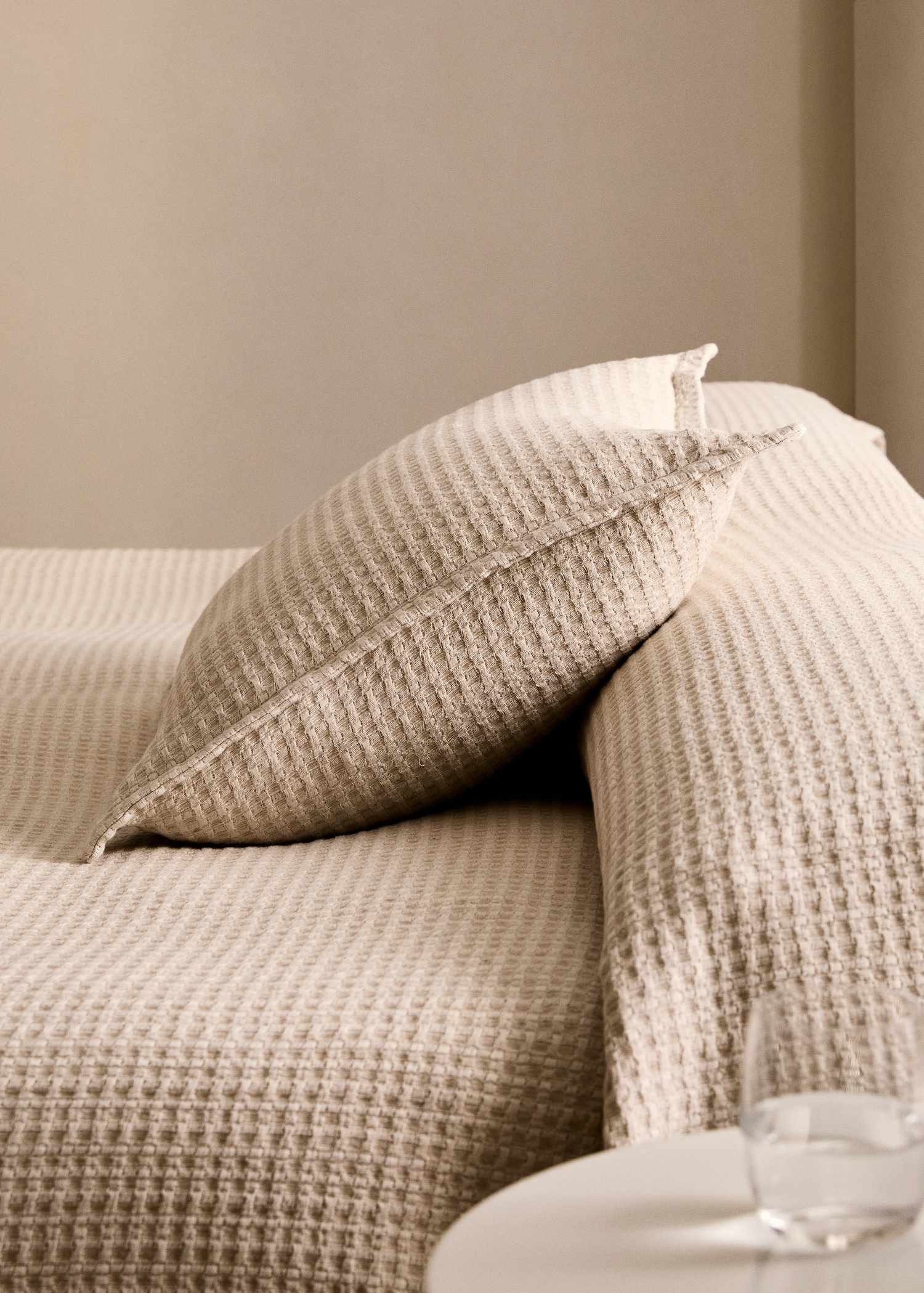 Size: 50x50cm. Waffle-efect texture. Creates a warm and cozy atmosphere. Ideal for those looking to combine style and comfort in their resting space. Coordinates with more products from the collection