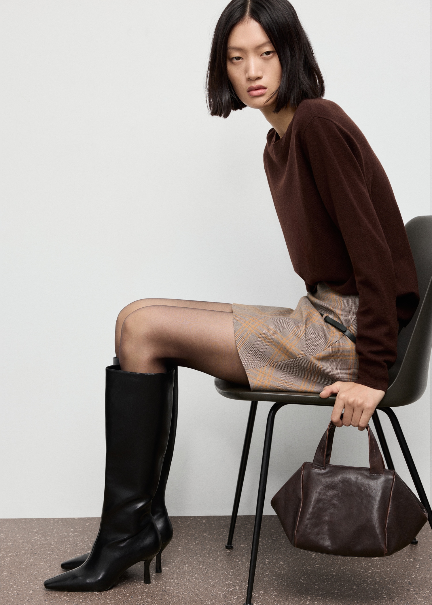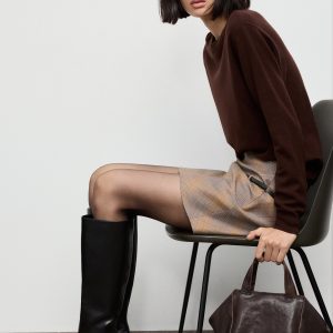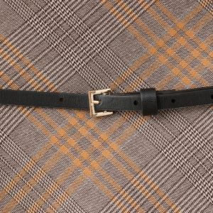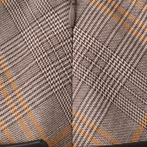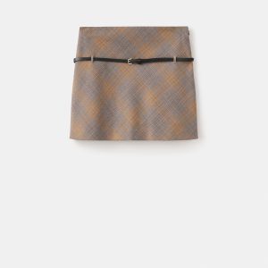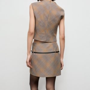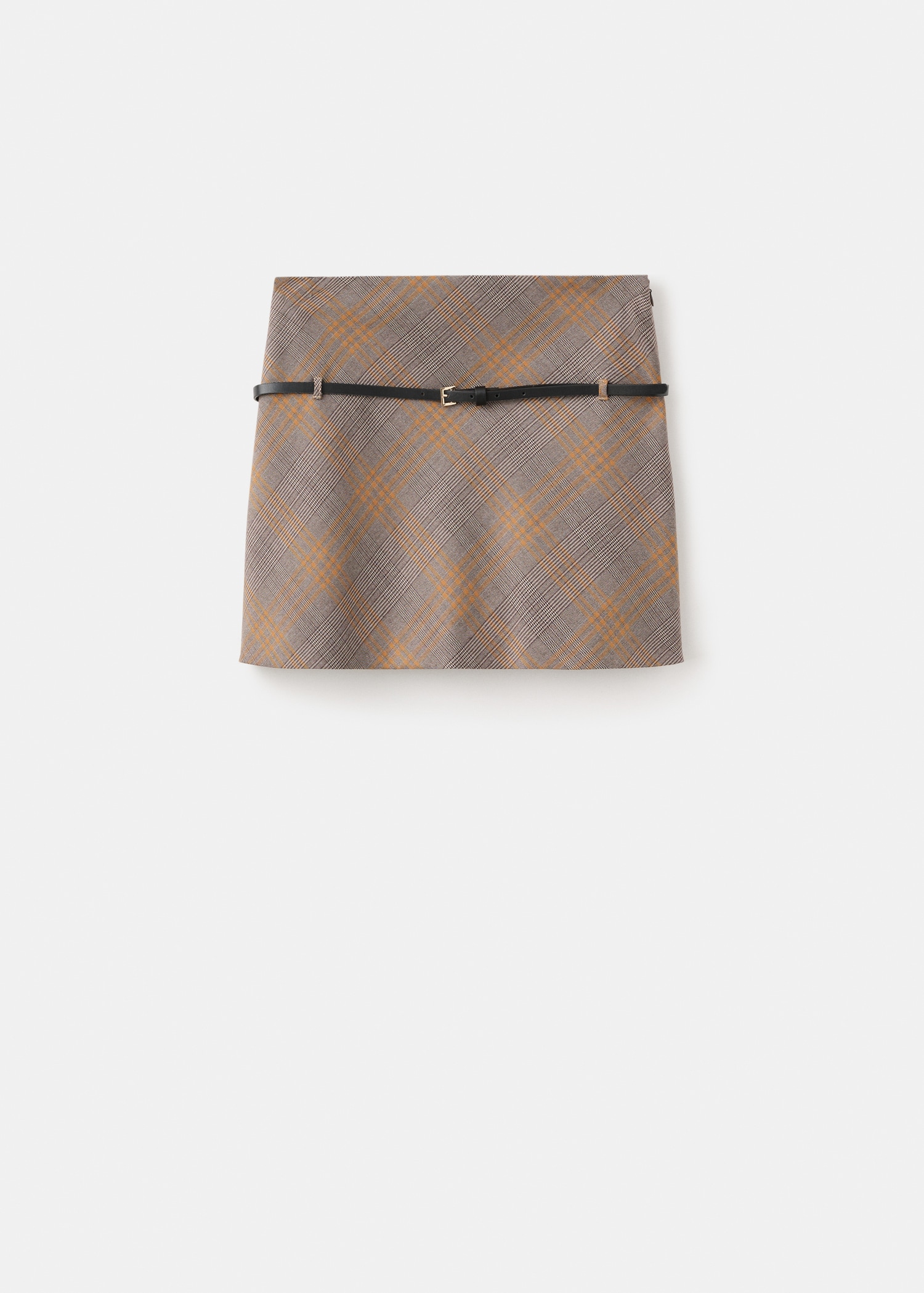 With a short and check design, this garment features a mid-rise with belt loops. It includes a belt with a buckle fastening and is adjusted with a side zip. It comes with a matching top