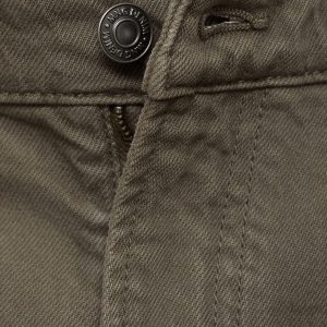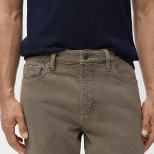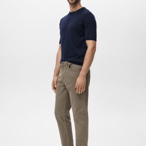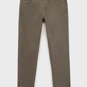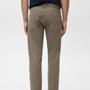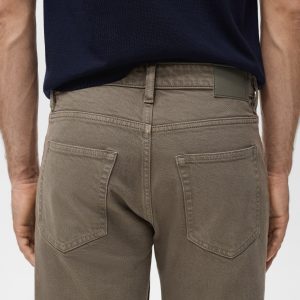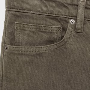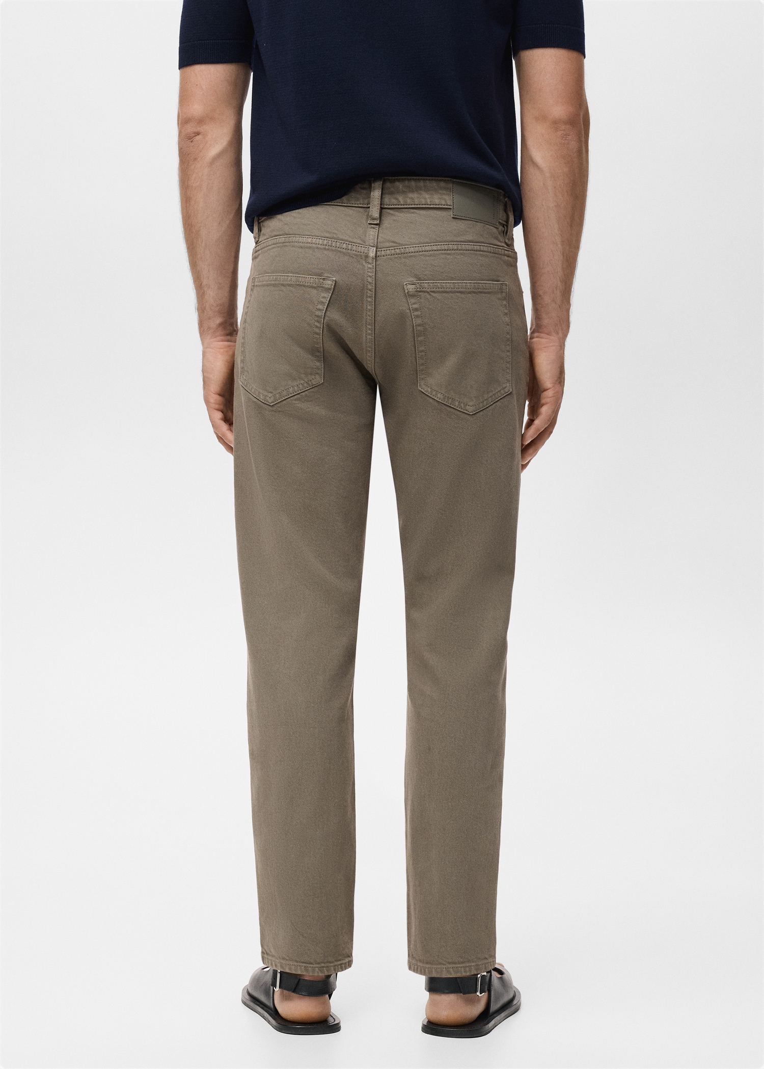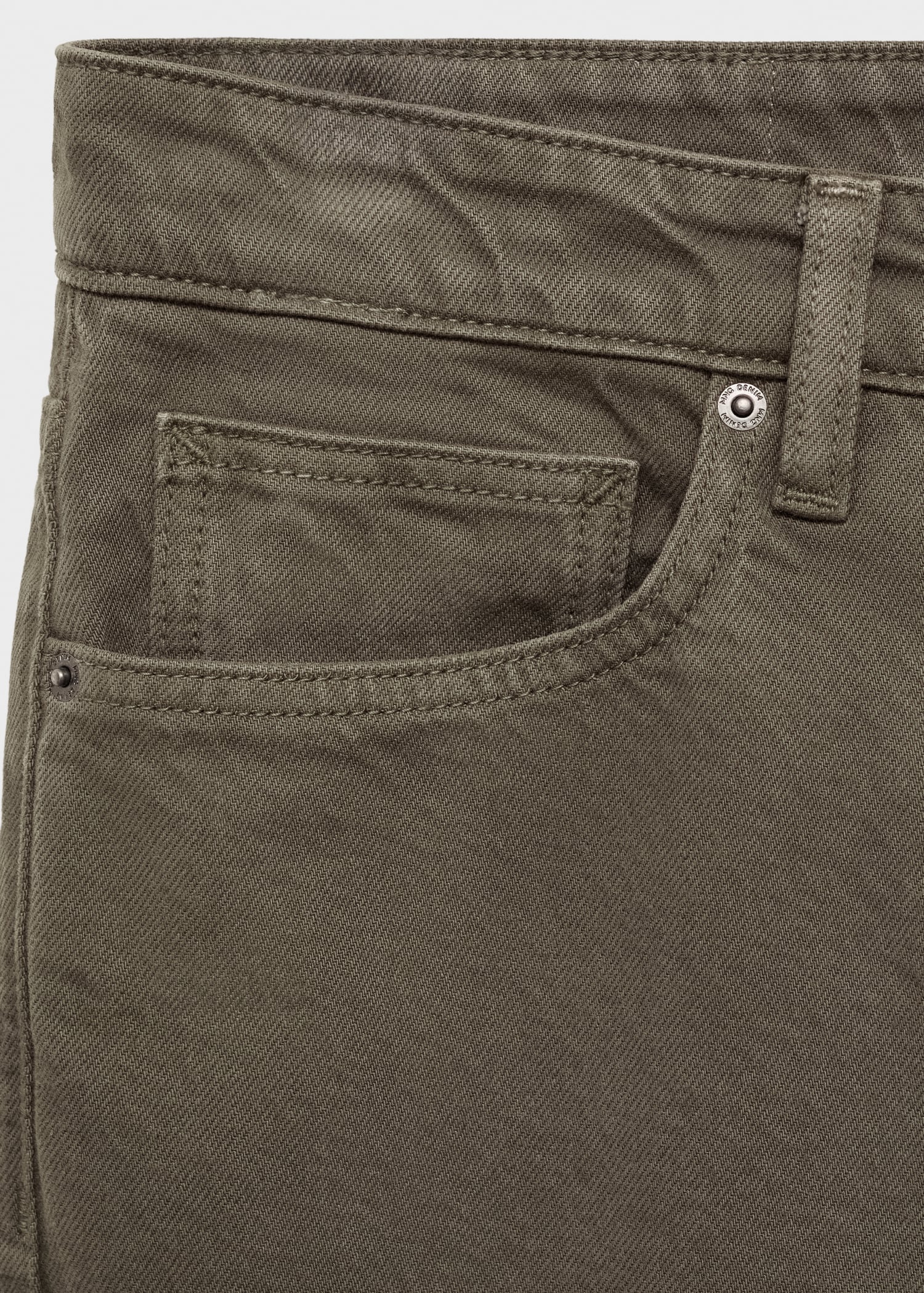 Tapered fit: wide cut at the top that narrows from the knee to the ankle. Crop design. Cotton denim fabric. Belt loops. Button and zipper closure. Coin pocket at hip height. Two side pockets. Two patch pockets at the back