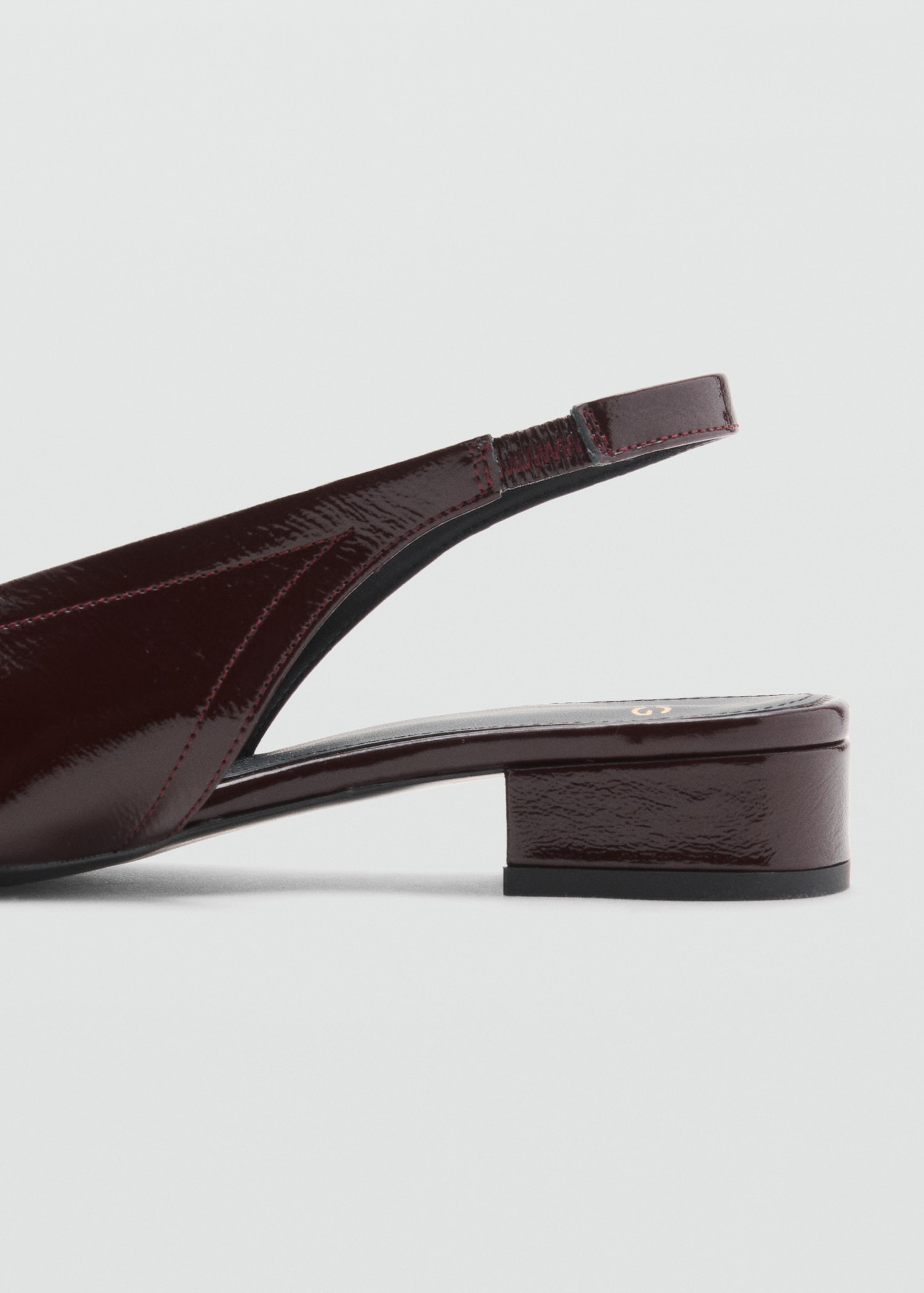 100% bovine leather. Slingback design. Round toe. Block heel. No closure